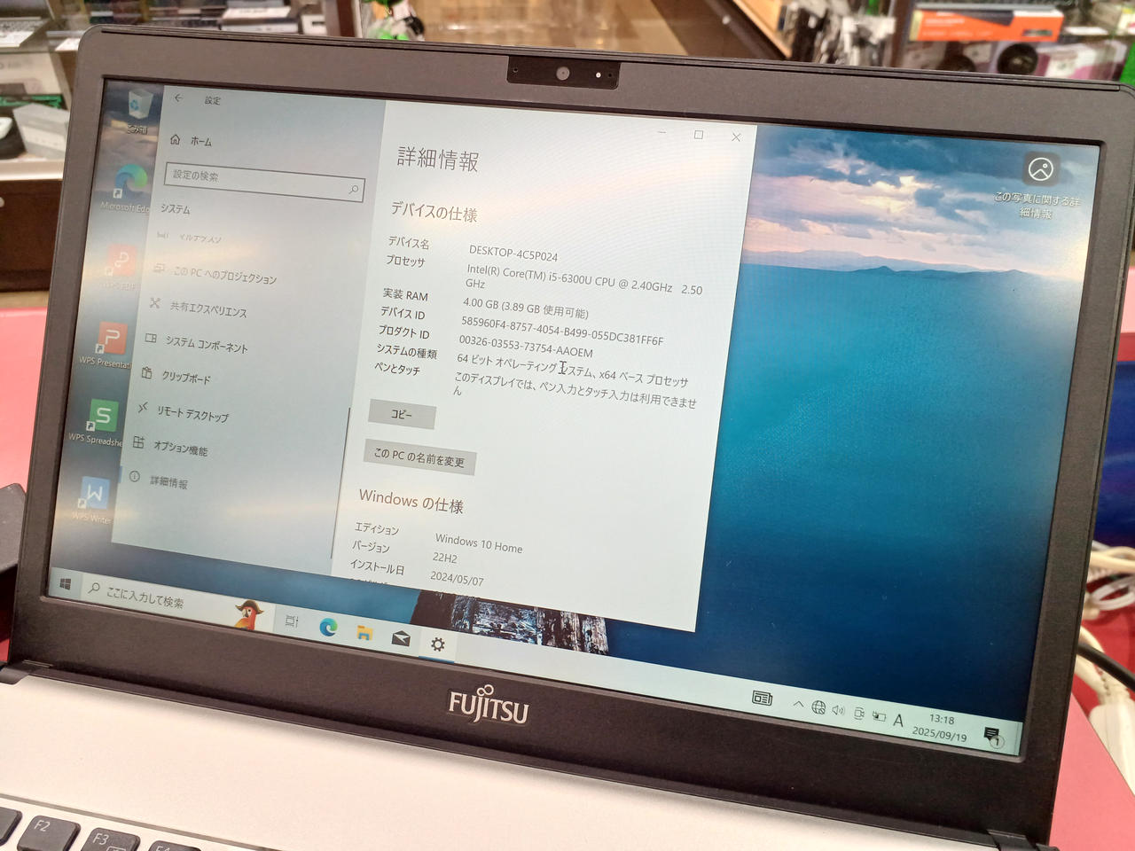CPU:Intel Corei5-6300U@2.40GHz メモリ:4GB ストレージ:HDD 1TB |