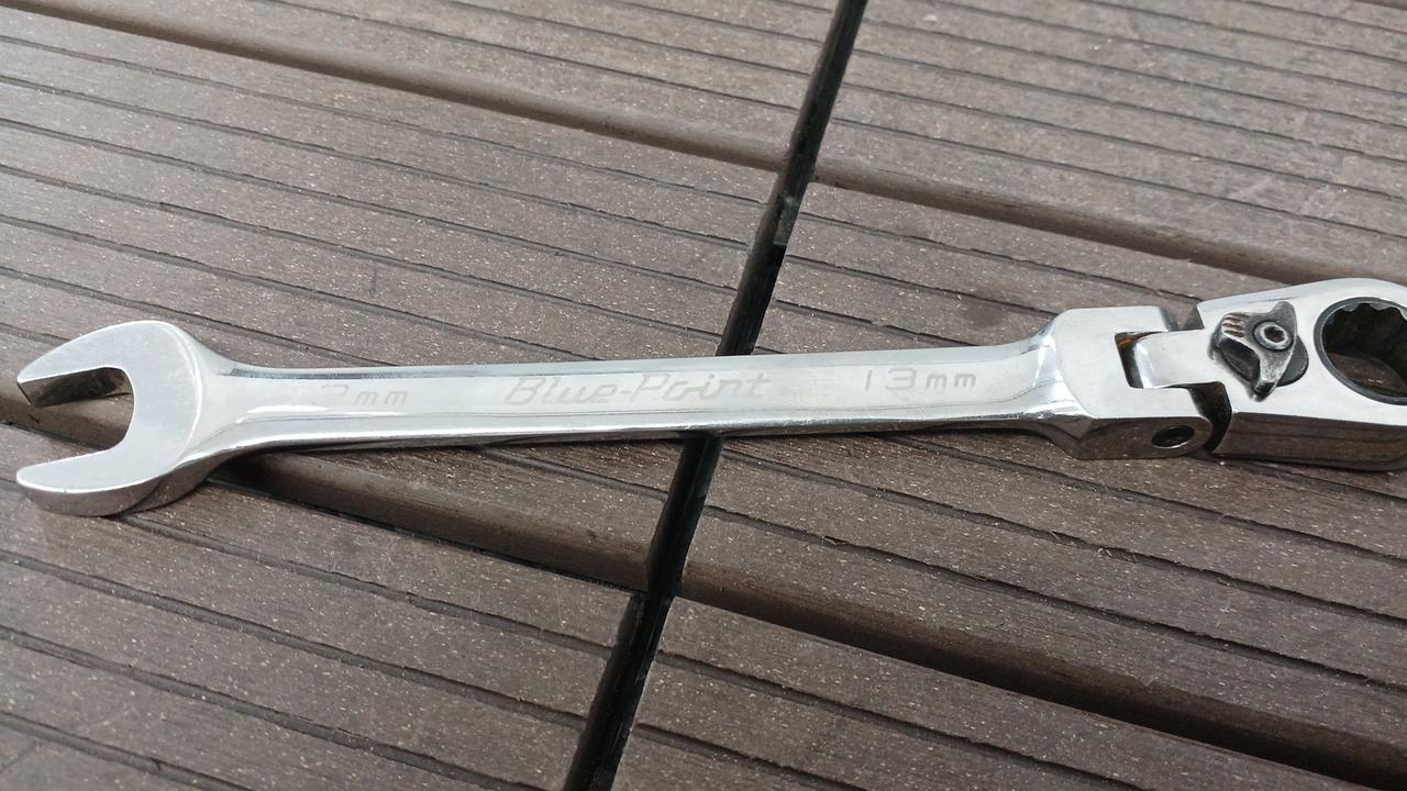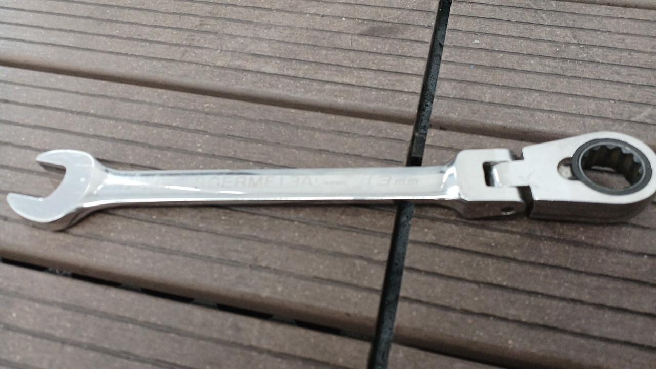 切り替えレバー付きの首振りタイプコンビネーションラチェットレンチです。 |