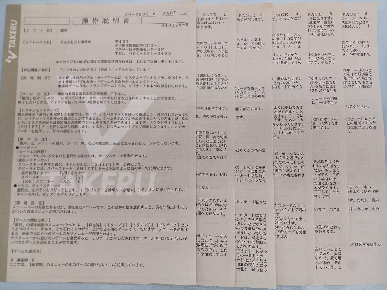 PC98およびMSX2 3.5インチソフト 銀河 (TAKERU用ソフト) |