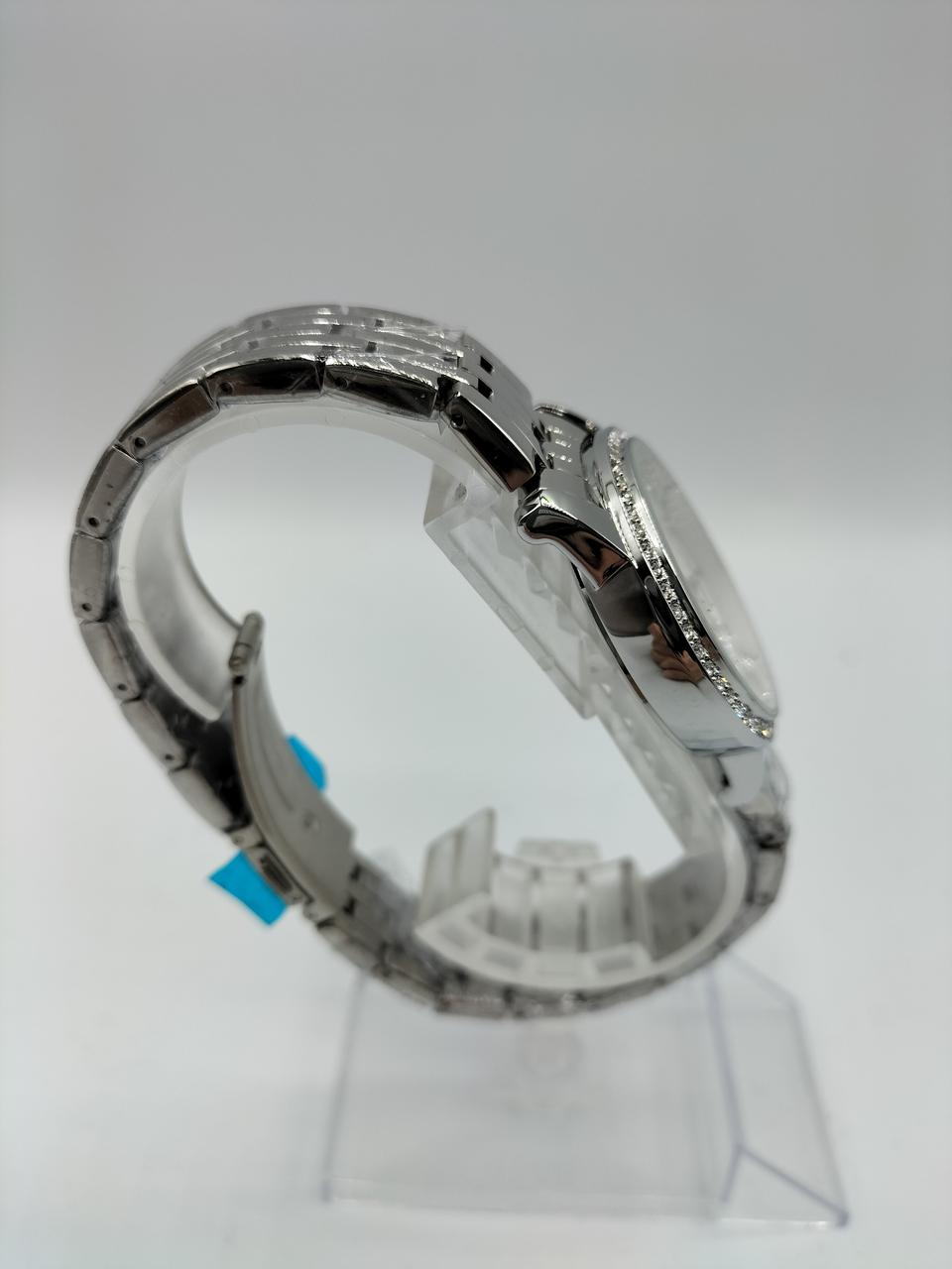 ラインストーンがキラキラ輝く時計です。パーティーやお食事会などの場面でも活躍しそうです。