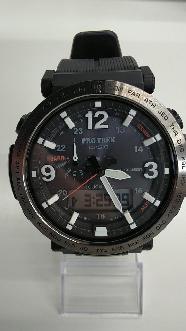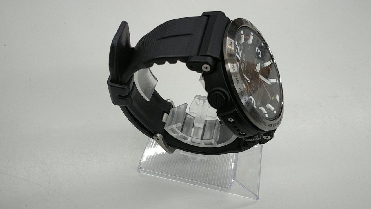 10気圧防水/耐低温仕様(-10℃)/高い視認性を誇るSTN液晶/タフソーラー/気圧傾向表示機能/ムーブメントの耐久性を向上させるハイブリッドマウント構造。 |