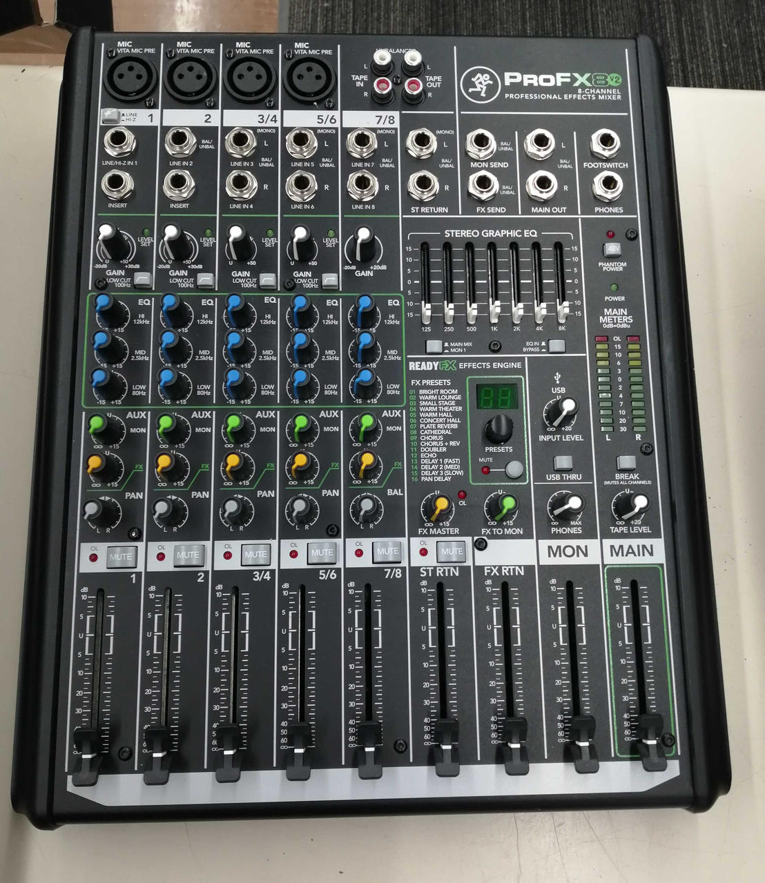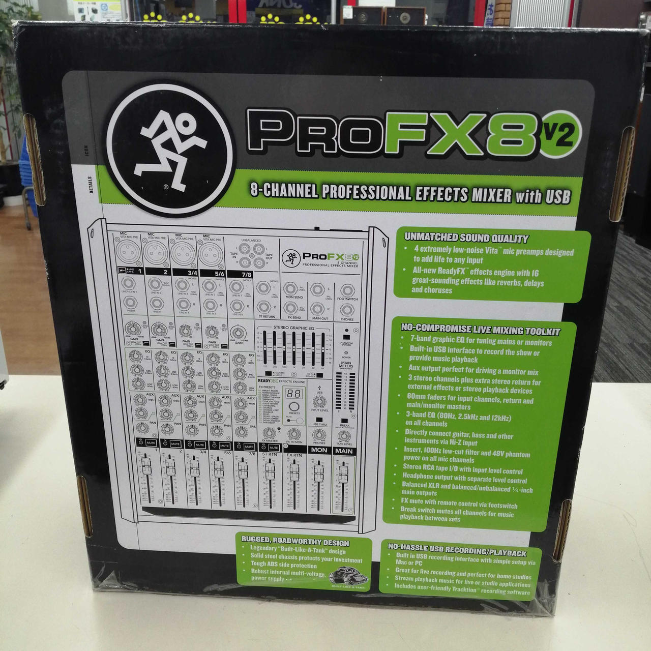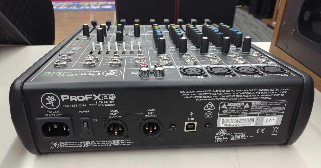 低ノイズなマイクプリアンプと16種類のエフェクターを内蔵。MIC入力:4(内インサート対応:2) リバーブ、ディレイ、コーラスなどのエフェクターを搭載。外形寸法:幅290×高さ91×奥行358mm 小型ながらしっかりした音の出るミキサーです |