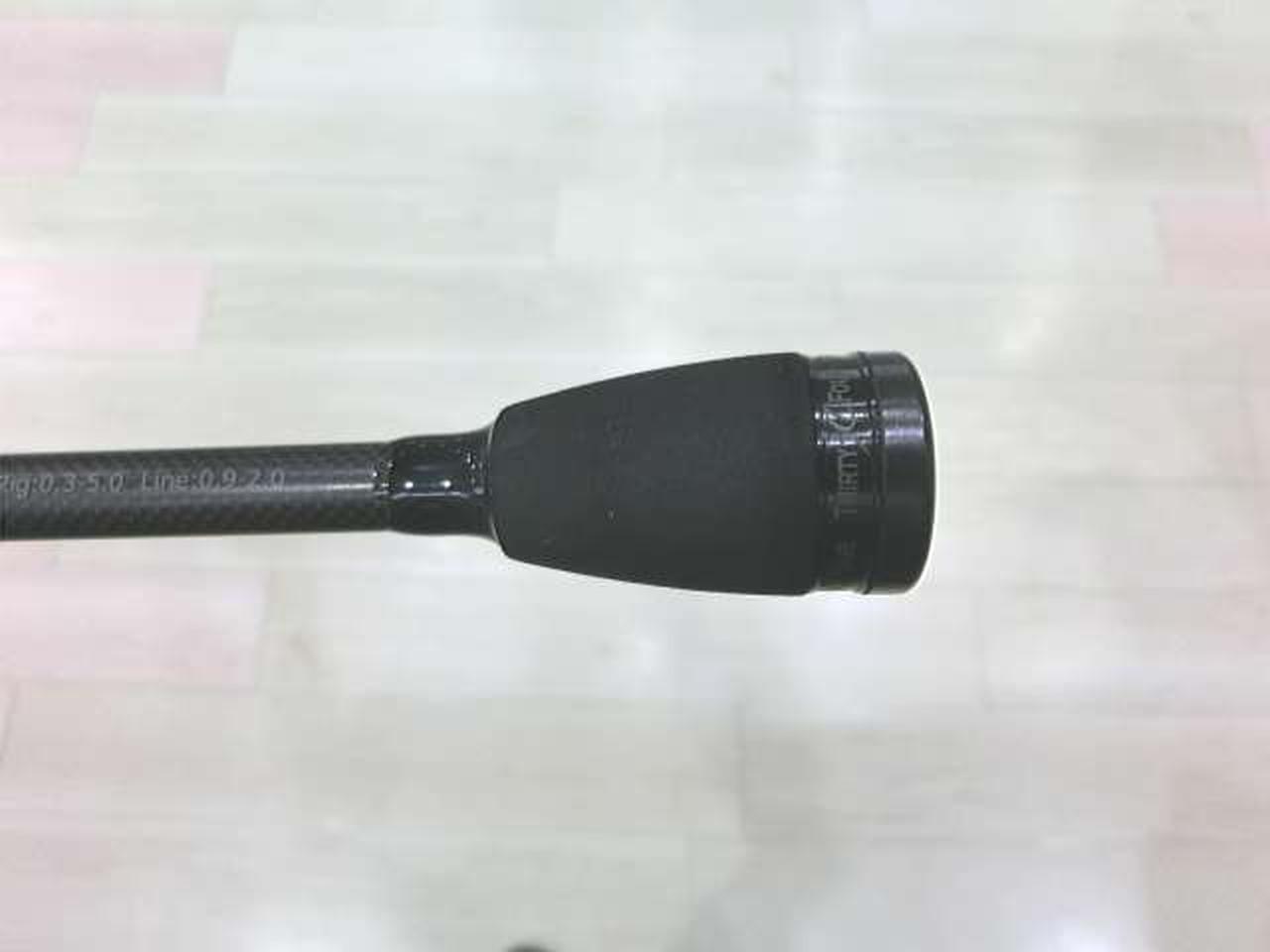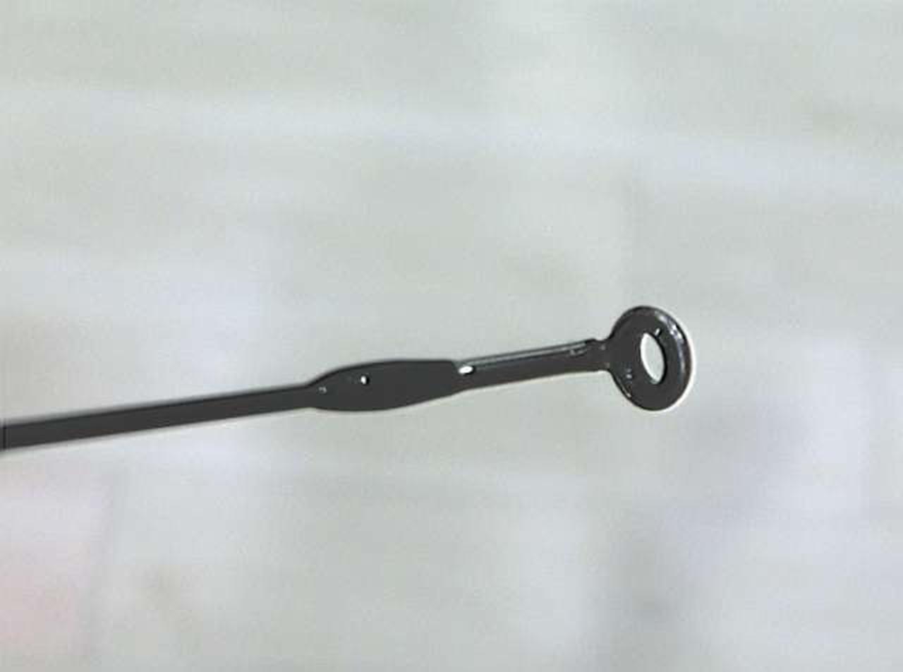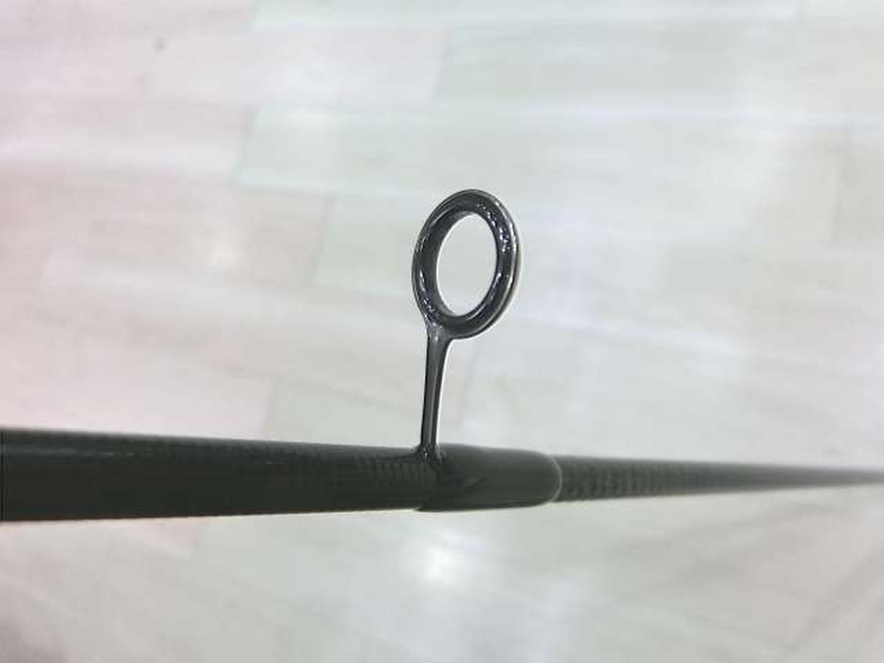 このロッドの特徴はなんといっても「違和感」。手に持っただけだとものすごくシャンとした感じで超ファーストテーパーという感じなのですが、振ってみたり実際に海で使ってみると「ん?」という違和感を感じます。では何に違和感を感じるのかというとその正体は「柔らかさ」です。しなやかさと表現するのが適切かどうかわかりませんが、変な柔らかさがあるのです。実はこのロッドのバット部分には東レの「ナノアロイR」というカーボンの55tが使われています。トップの方には30tをコンポジットで組み合わせて使用しています。普通こういった場合はバットからベリー、ティップにかけて55t→40t→30tというふうに徐々に落としていきます。55t→30tという急激な変化が独特の違和感をもたらしているのだと思います。感度も非常に良好で、釣っていて非常に楽しいロッドです。小さい魚でも大きい魚でもよく曲がってくれます。どんなサイズの魚でも今までに感じたことのない違和感を感じながら釣るのがかなり楽しいです。まさにファーストとスローの間のような感覚。 |