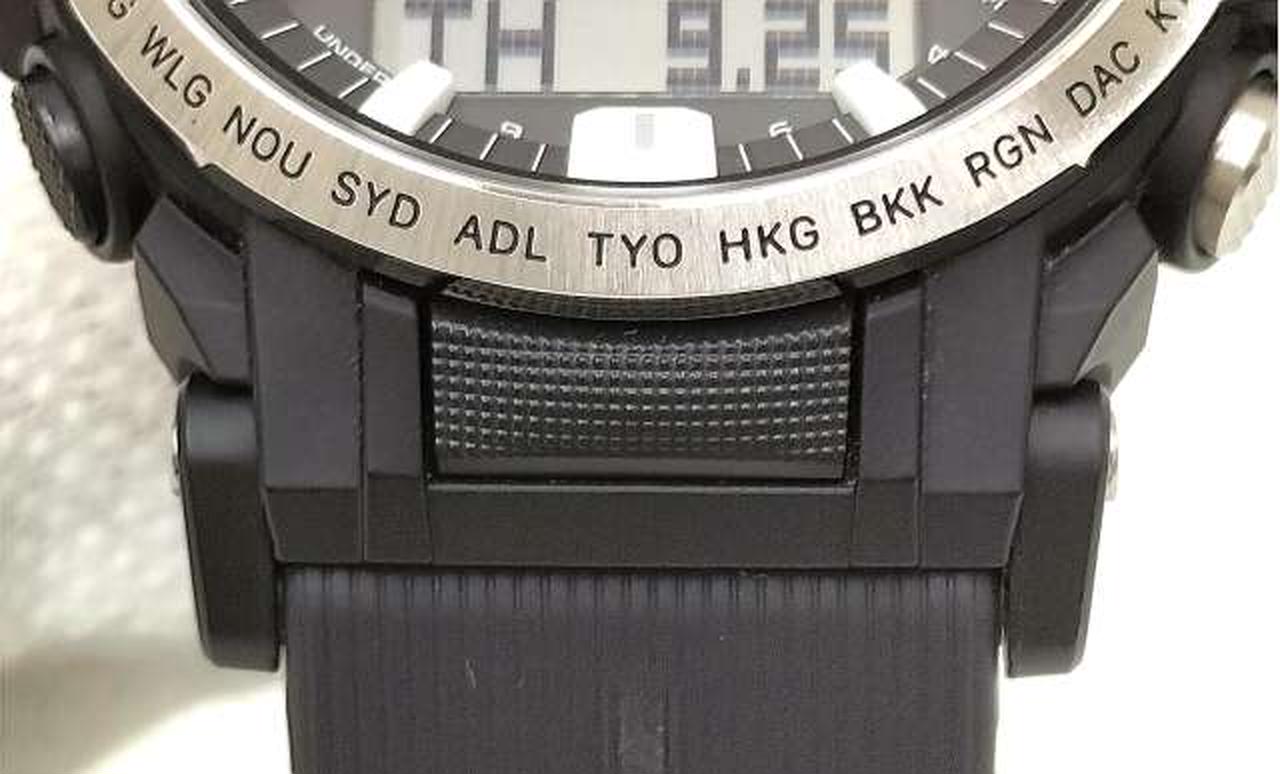 耐低温仕様(-10℃) / ねじロック式リューズ / ネオブライト / ワールドタイム:世界29都市(29タイムゾーン、サマータイム設定機能付き)+UTC(協定世界時)の時刻表示、UTCダイレクト呼出機能、ホームタイムの都市入替機能 / ストップウオッチ(1/100秒、24時間計) / タイマー(セット単位:1分、最大セット:60分、1秒単位で計測) / 時刻アラーム5本・時報 / ダブルLEDライト:文字板用LEDライト(フルオートライト、スーパーイルミネーター、残照機能、残照時間切替(1.5秒/3秒)付き)、LCD部用LEDバックライト(フルオートライト、スーパーイルミネーター、残照機能、残照時間切替(1.5秒/3秒)付き) / LED:ホワイト / フルオートカレンダー / 操作音ON/OFF切替機能 / 針位置自動補正機能 / パワーセービング機能(暗所では一定時間が経過すると表示を消し運針を停止して節電します) / バッテリーインジケーター表示 / 12/24時間制表示切替 / 針退避機能(手動、自動(高度、気圧、温度計測時)) |