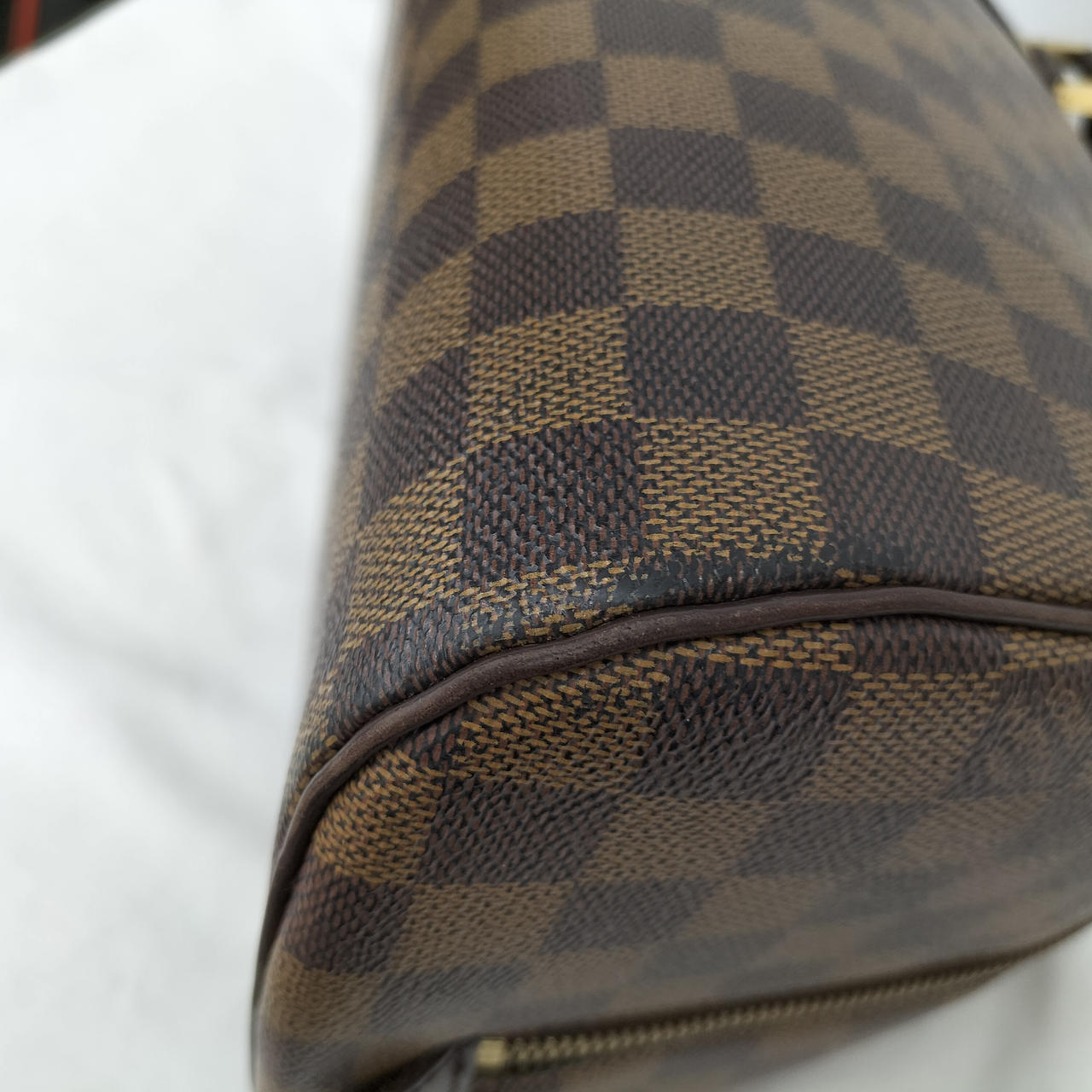 上部のファスナー周りにヒビ割れあります。画像をご確認下さい。