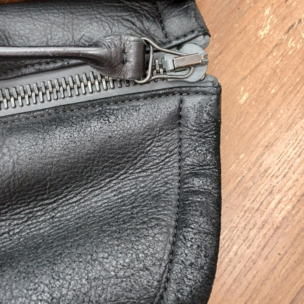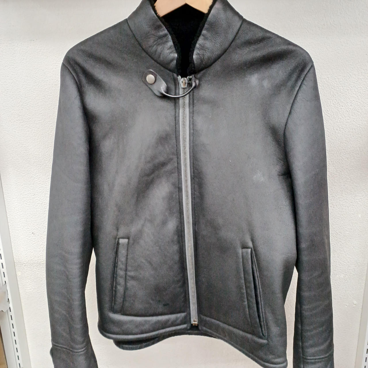 数カ所に白い汚れ、前面右下に擦れ、袖内側に使用感によるしわがあります。 |