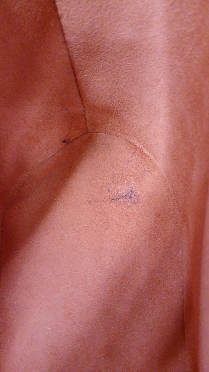 内側にボールペンの跡が有ります。表面はポケット部分に若干の小傷は見られますが、比較的綺麗なお品物です。店頭でも販売しているため、状態が変わってしまう場合がございます。 |