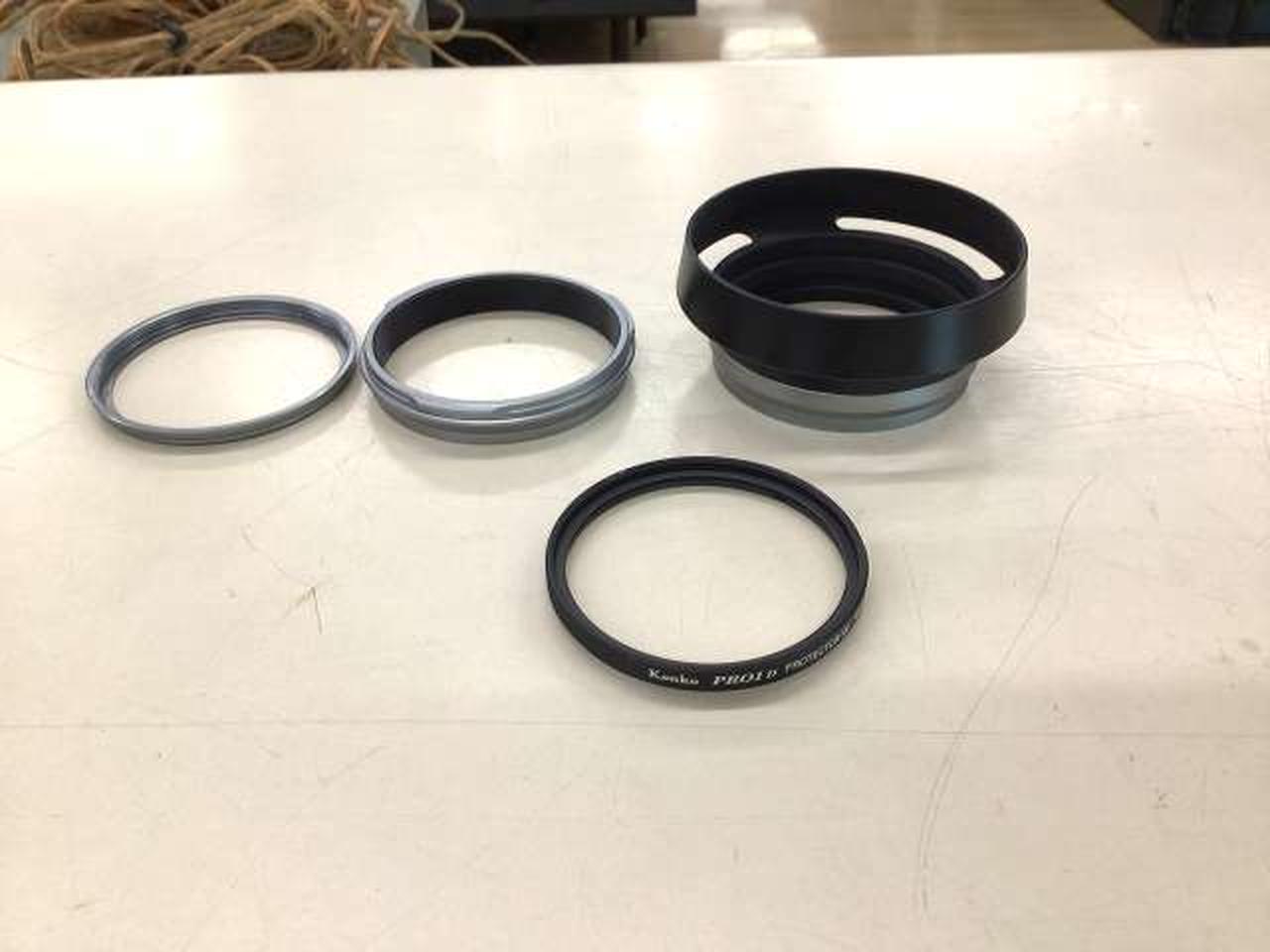 充電器、バッテリー、フード、フィルター、USBケーブル、ストラップ付き |