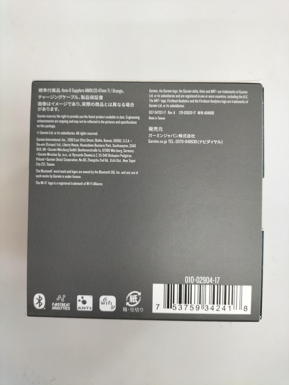 搭載センサー:加速度センサー/ジャイロセンサー/デジタルコンパス/GPS/気圧高度計/温度計/環境光センサー/深度センサー 防水・防塵性能:防水等級:10 ATM |