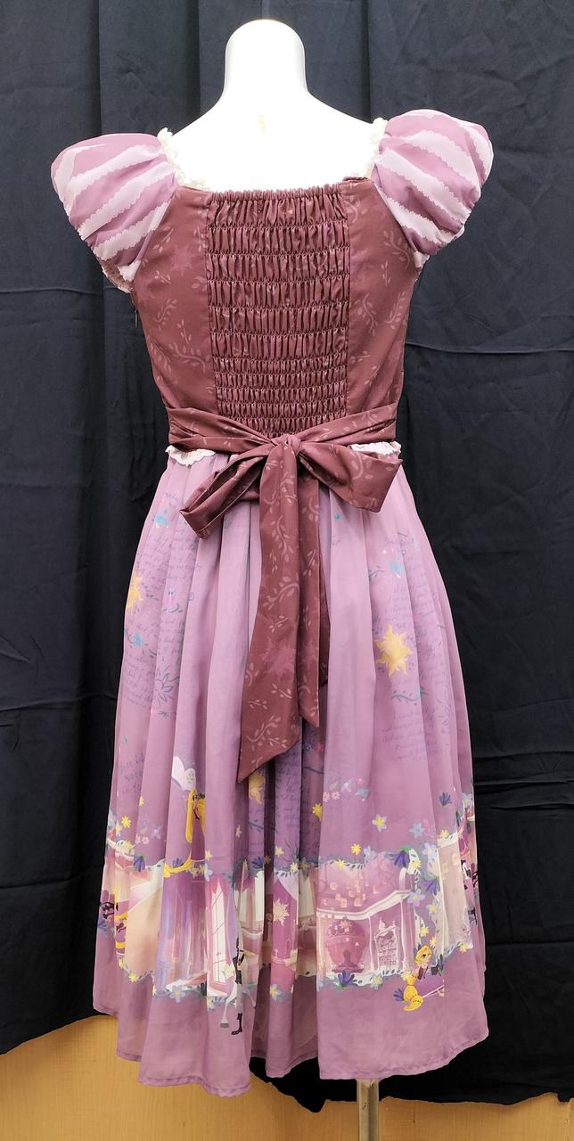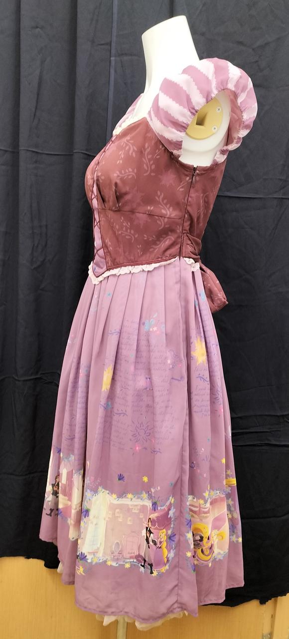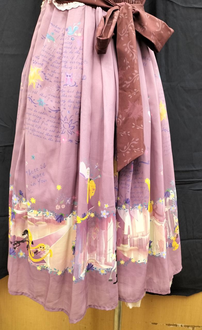 スカート部分に描かれたラプンツェルの世界が描かれ、裾部分にはフリルをあしらっており大変可愛らしい一着です。