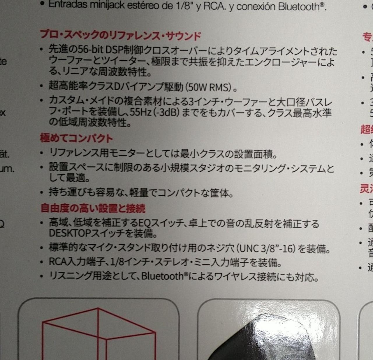 カスタム・メイドの複合素材による3インチ・ウーハー、大口径バスレフ・ポートを装備。クラス最高水準の低音域の周波数特性でサウンドを再生する。音楽制作用としてRCA、1/8インチ・ステレオ・ミニの入力端子を装備。リスニング用途として、Bluetooth接続にも対応。 |