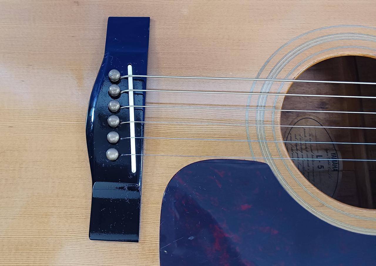 ブリッジピンがブラスに変えられており、独特な倍音感が癖になります!!ブラスピンと80/20弦最高です!! |