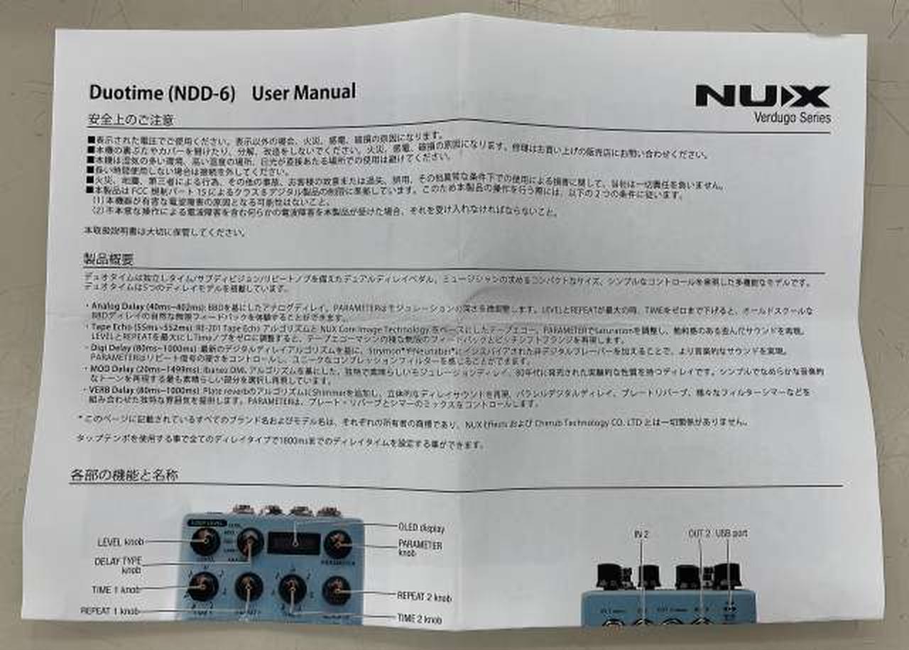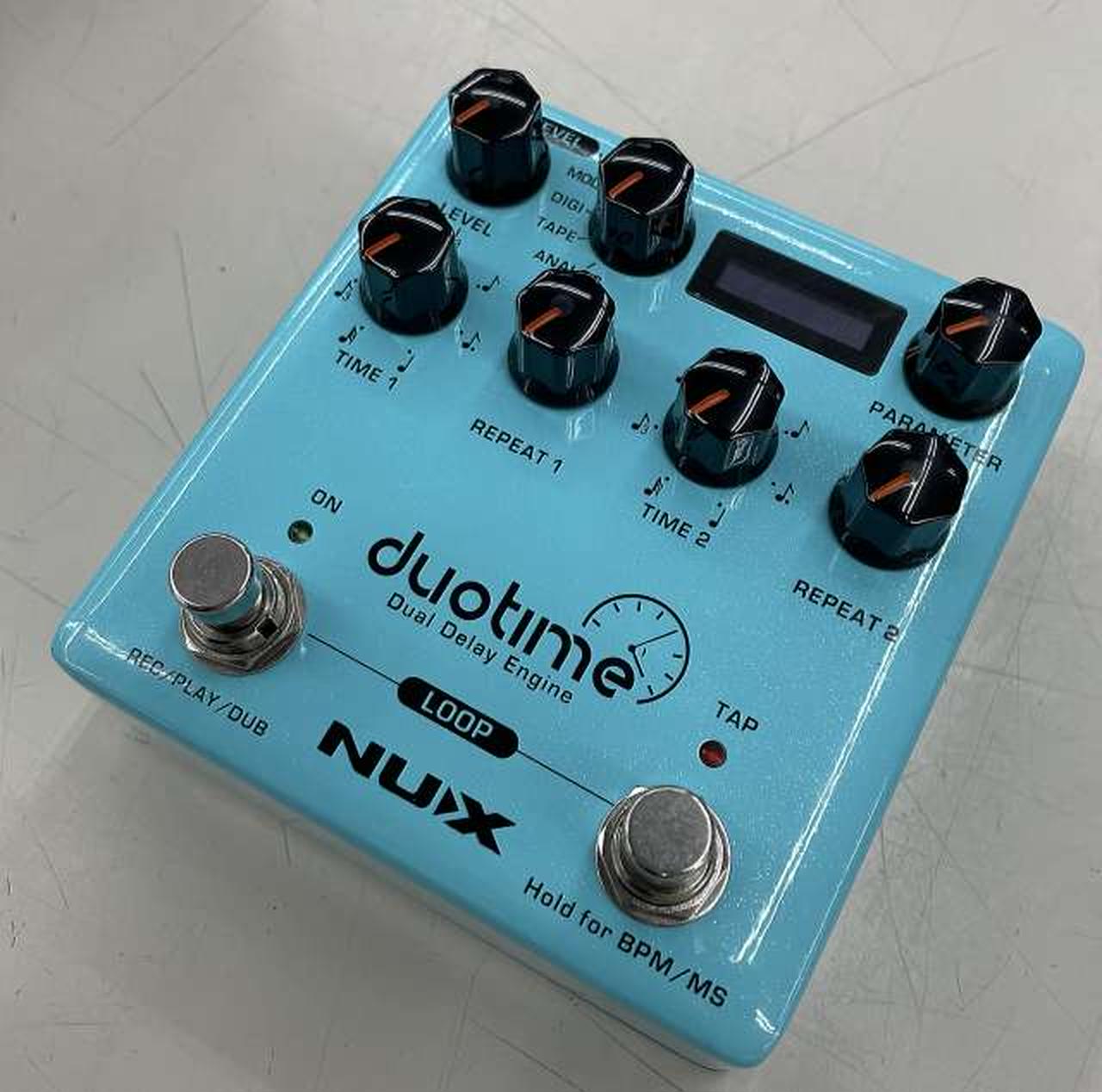 タイム/ サブディビジョン/ リピートノブを備えたデュアルディレイペダル |