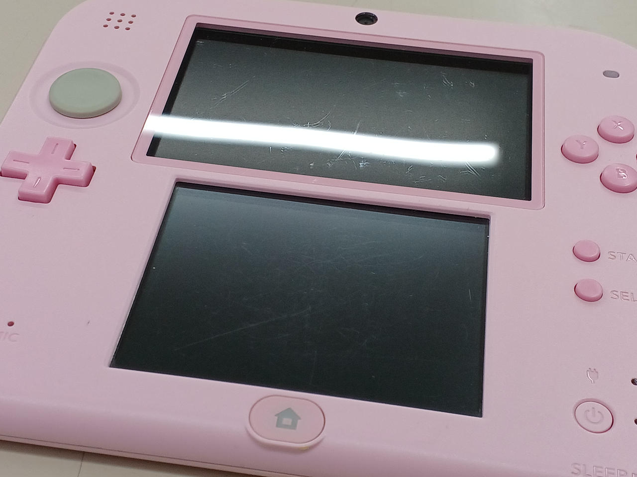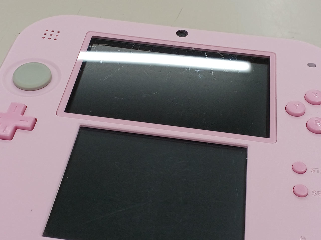 3D機能を省いた2DS!3DS/DSのソフトが遊べます!※New3DS専用ソフトは非対応付属品:ACアダプター。状態:上下の画面にキズあります。背面に黄色い汚れあります。タッチペンを固定するツメが折れているため、ペンが固定されません。