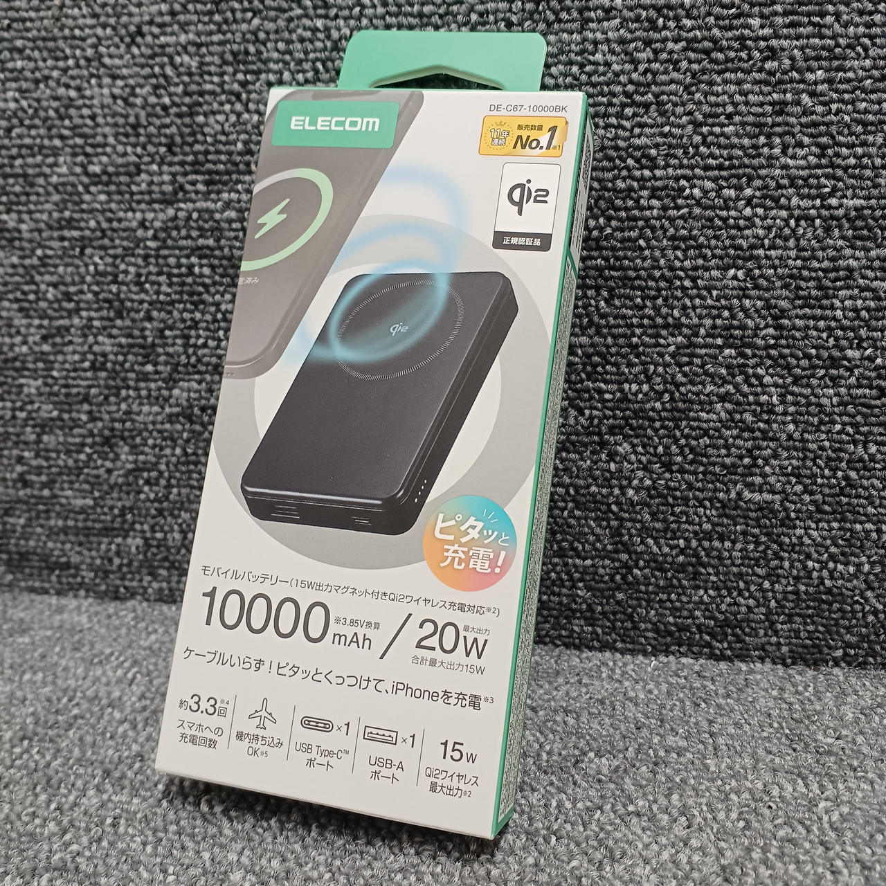 最大15Wのワイヤレス充電ができるモバイルバッテリー。 |