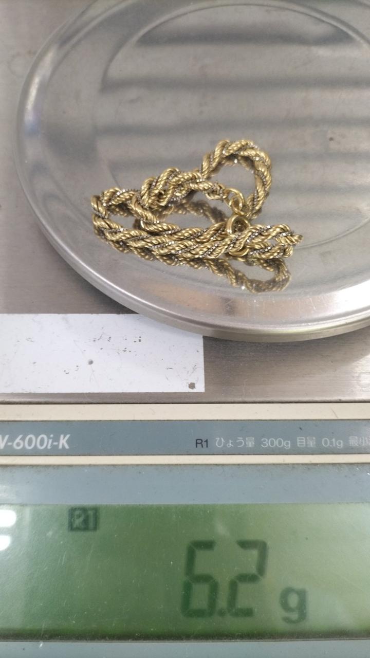 目立つ傷や変形などは見受けられませんがデザインの特性上すぐにヨレてしまいます。X線検査済みで銀色の部分もK18の素材です |