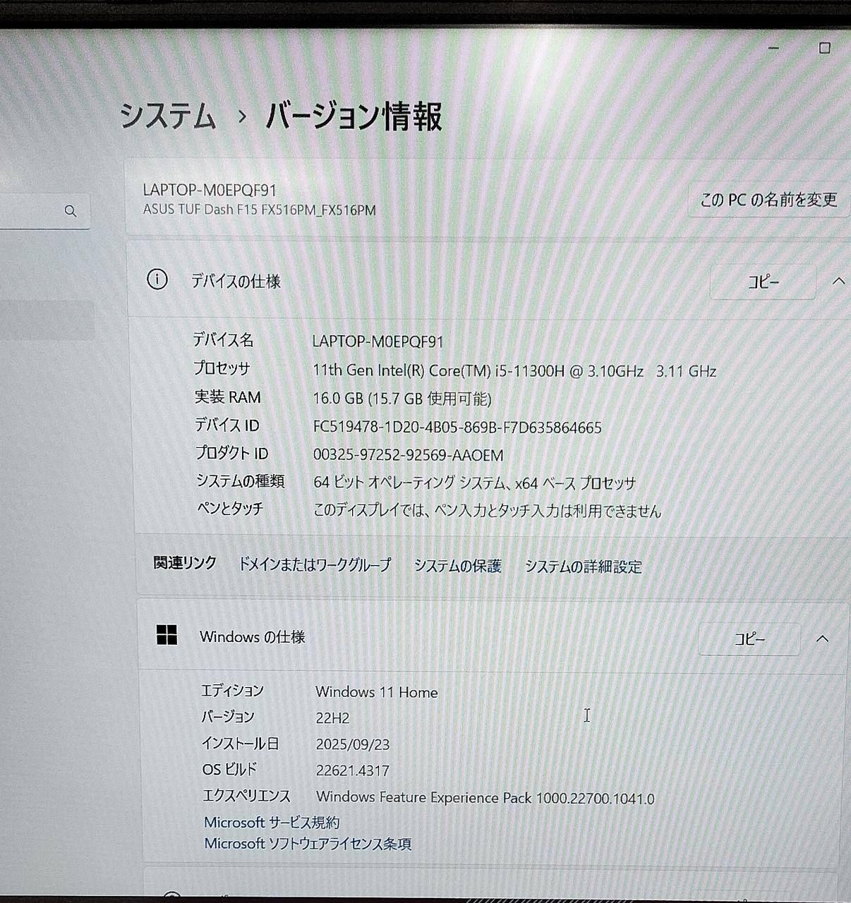 GeForceRTX3060+IrisXeGraphics/Windows11home バッテリーレポート:75% |