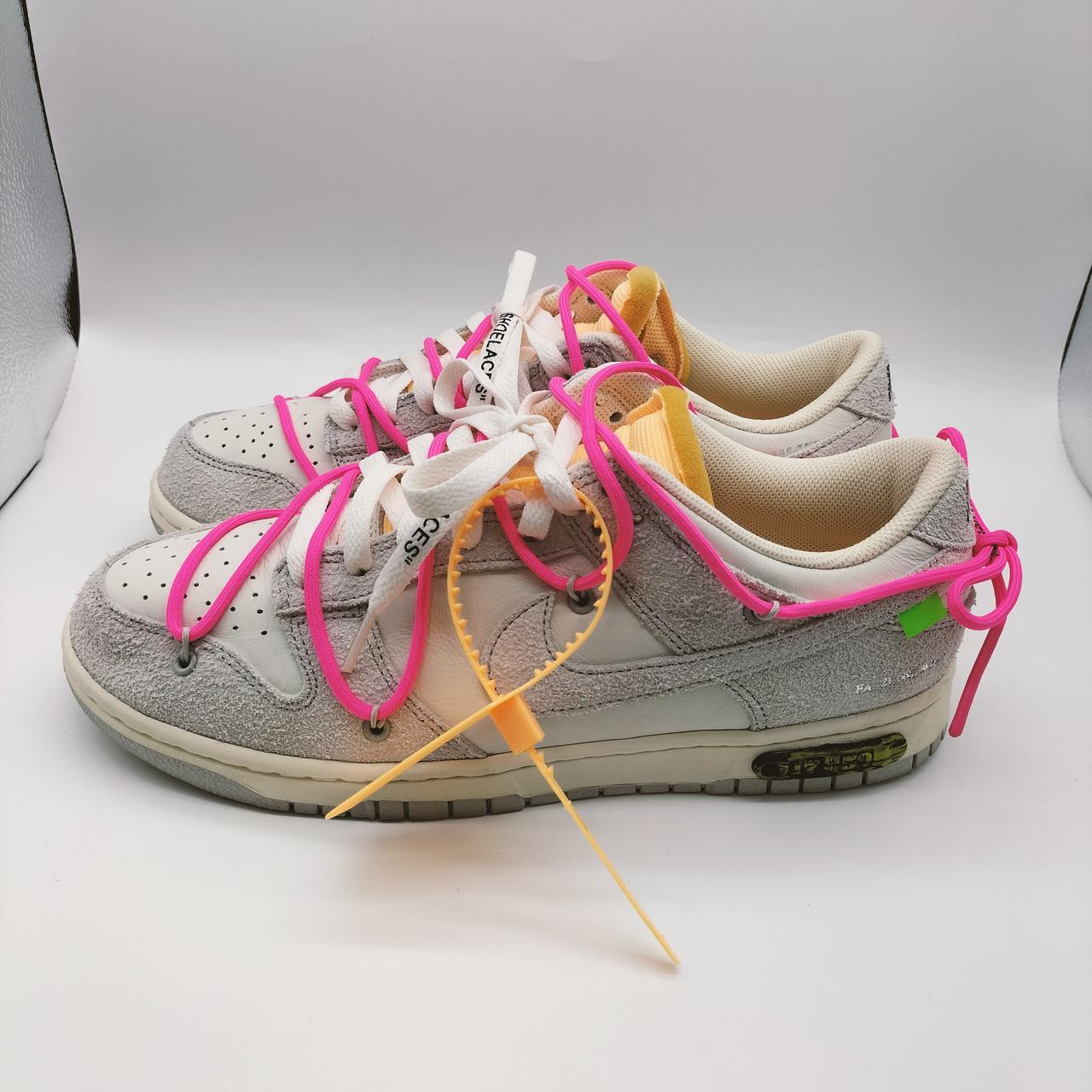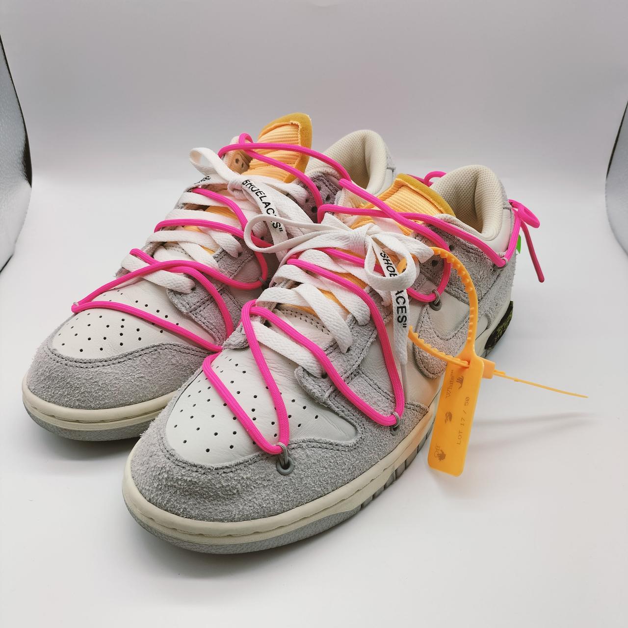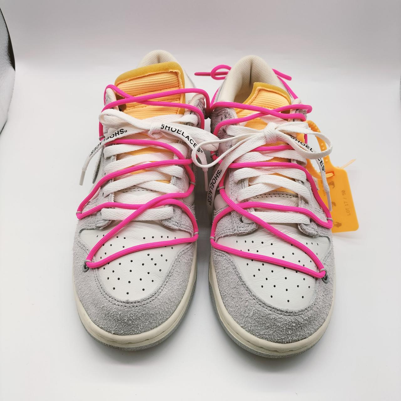 オフホワイトとナイキのコラボモデル「NIKE DUNK LOW」シリーズの「Lot17」です!鮮やかなピンクのオーバーレースが目を惹きます♪