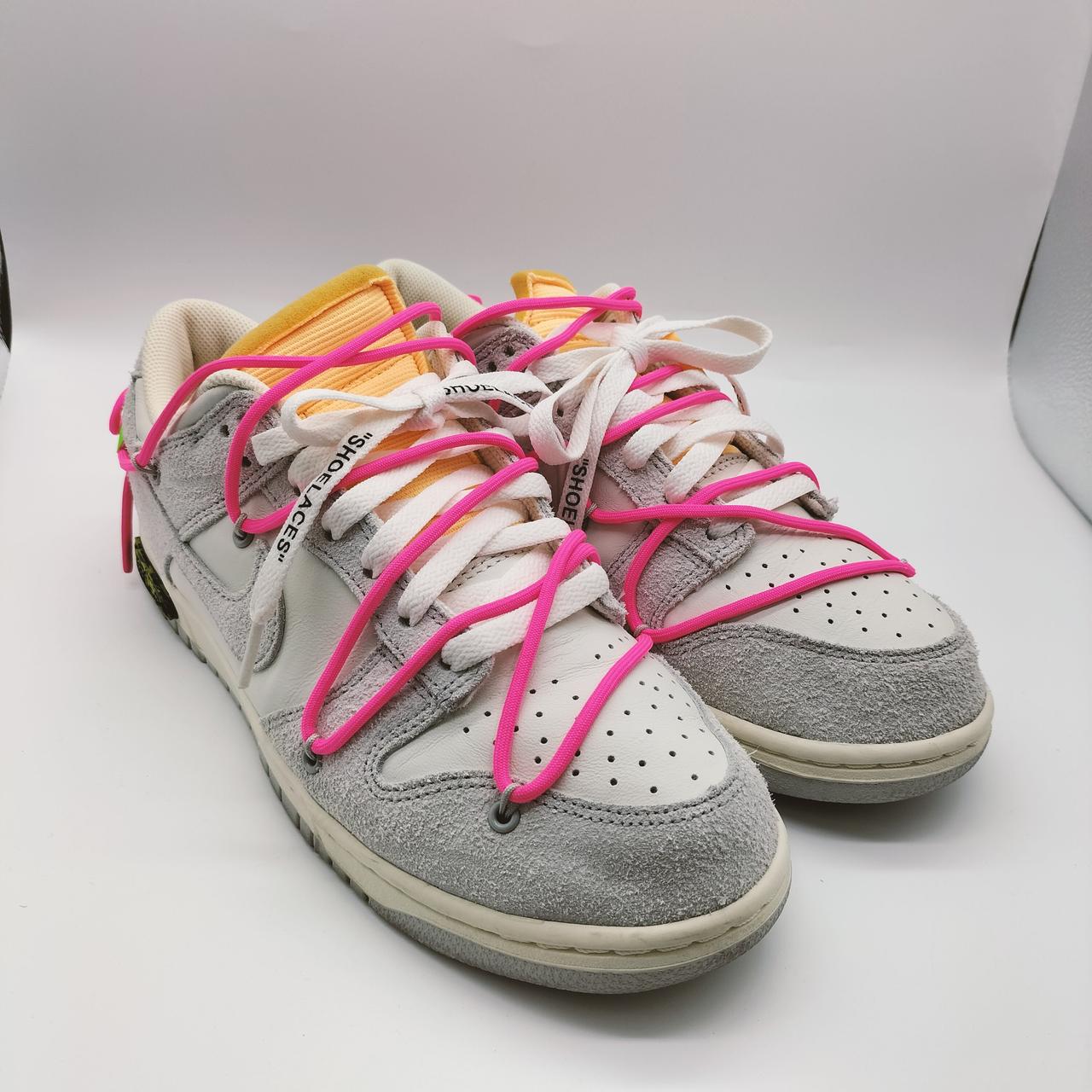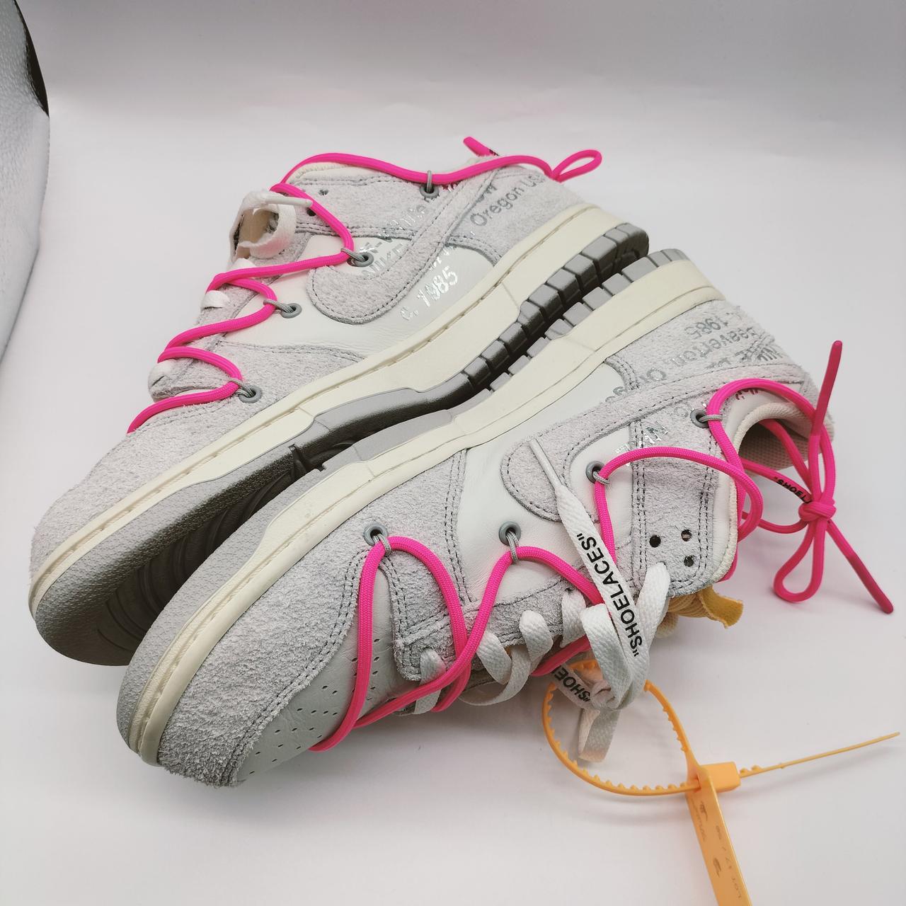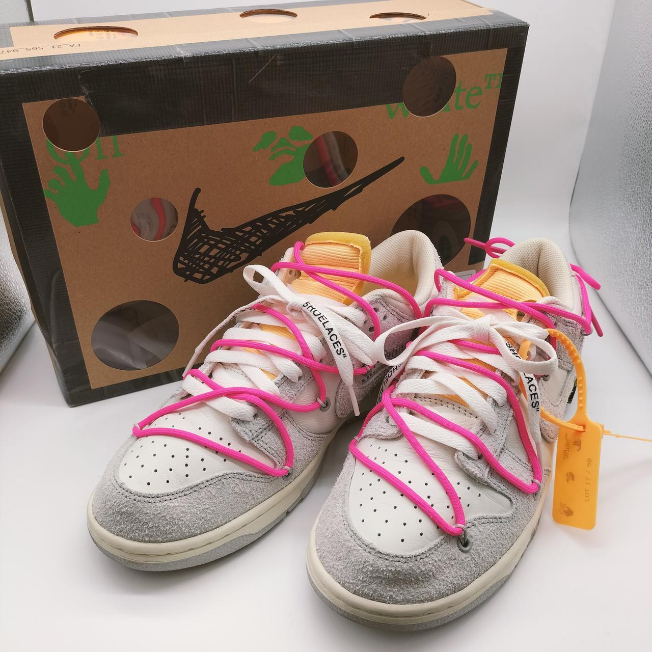 オフホワイトとナイキのコラボモデル「NIKE DUNK LOW」シリーズの「Lot17」です!鮮やかなピンクのオーバーレースが目を惹きます♪
