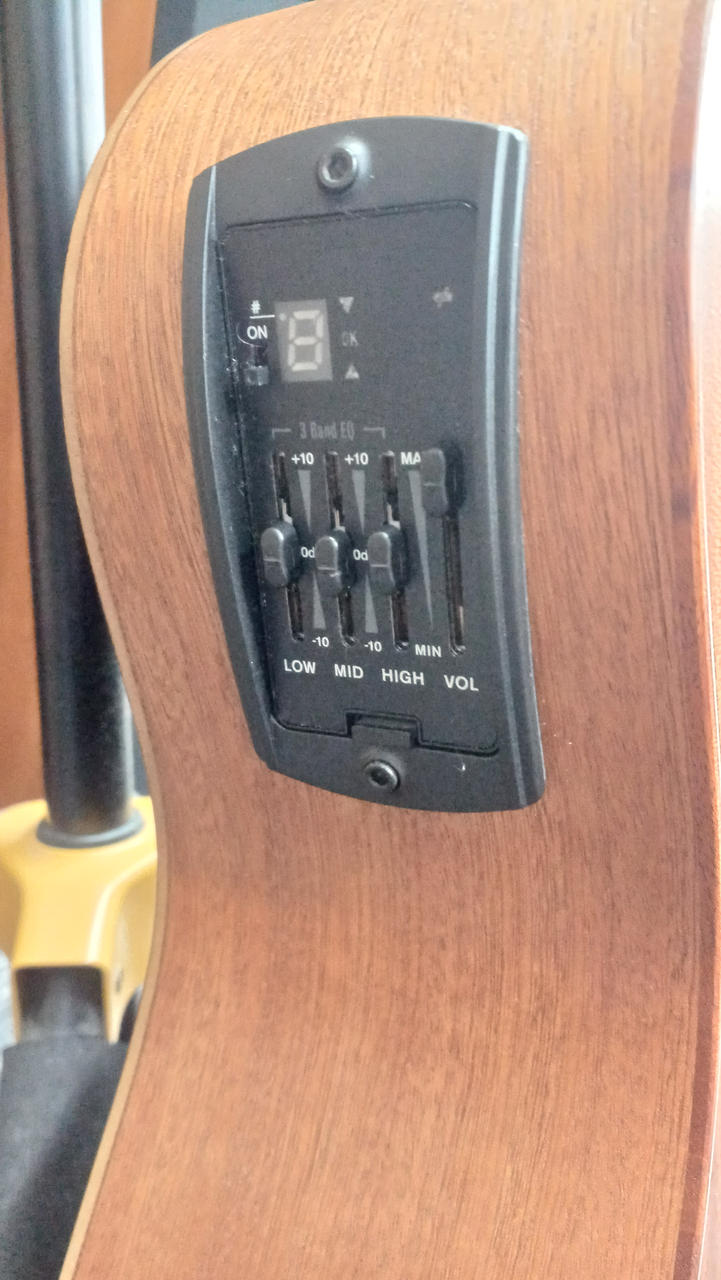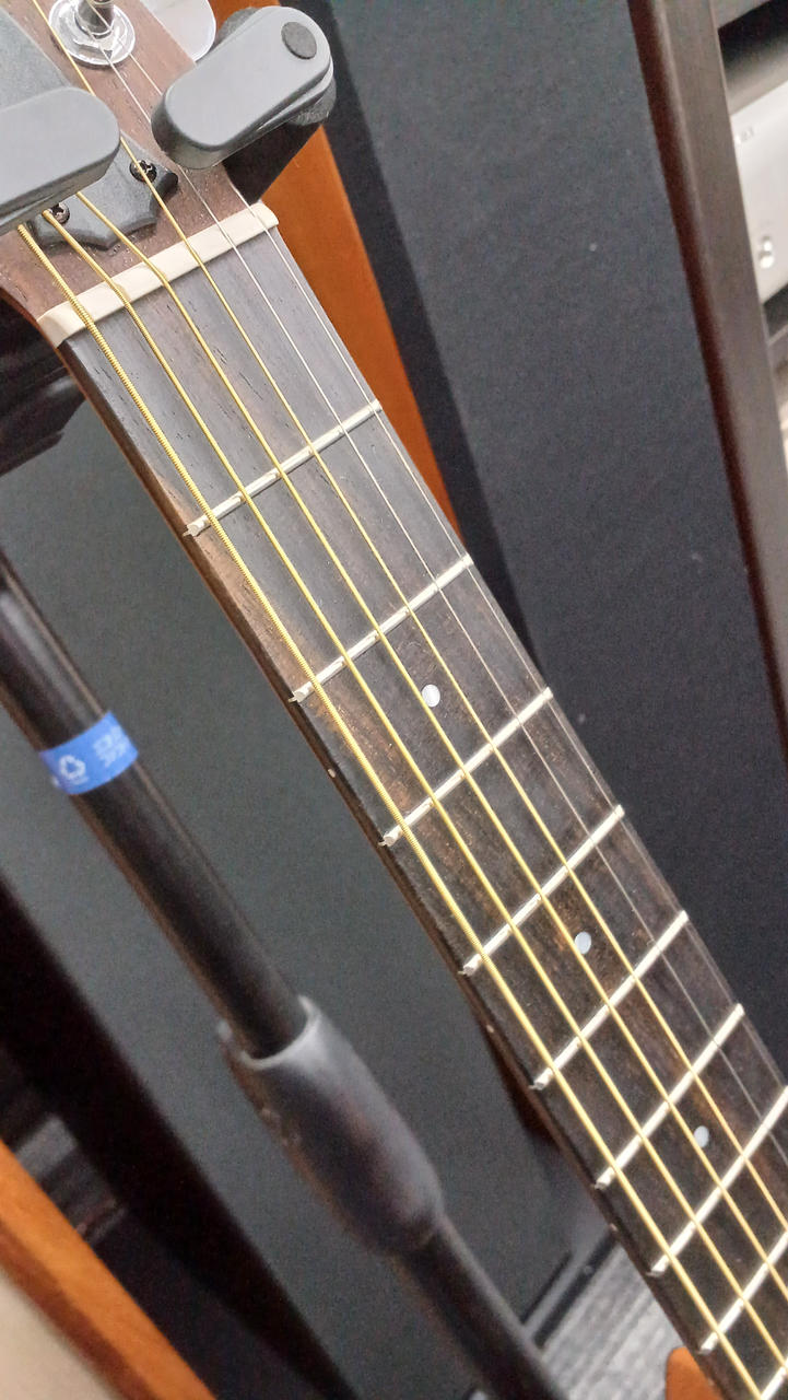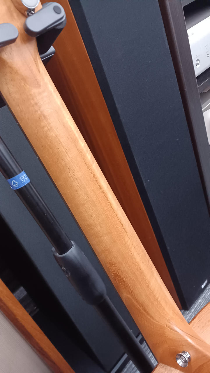 ネック、ロッド状態良好、フレット9割以上、ナットの高さを調節すればかなりのローアクションまで追い込めそうです |