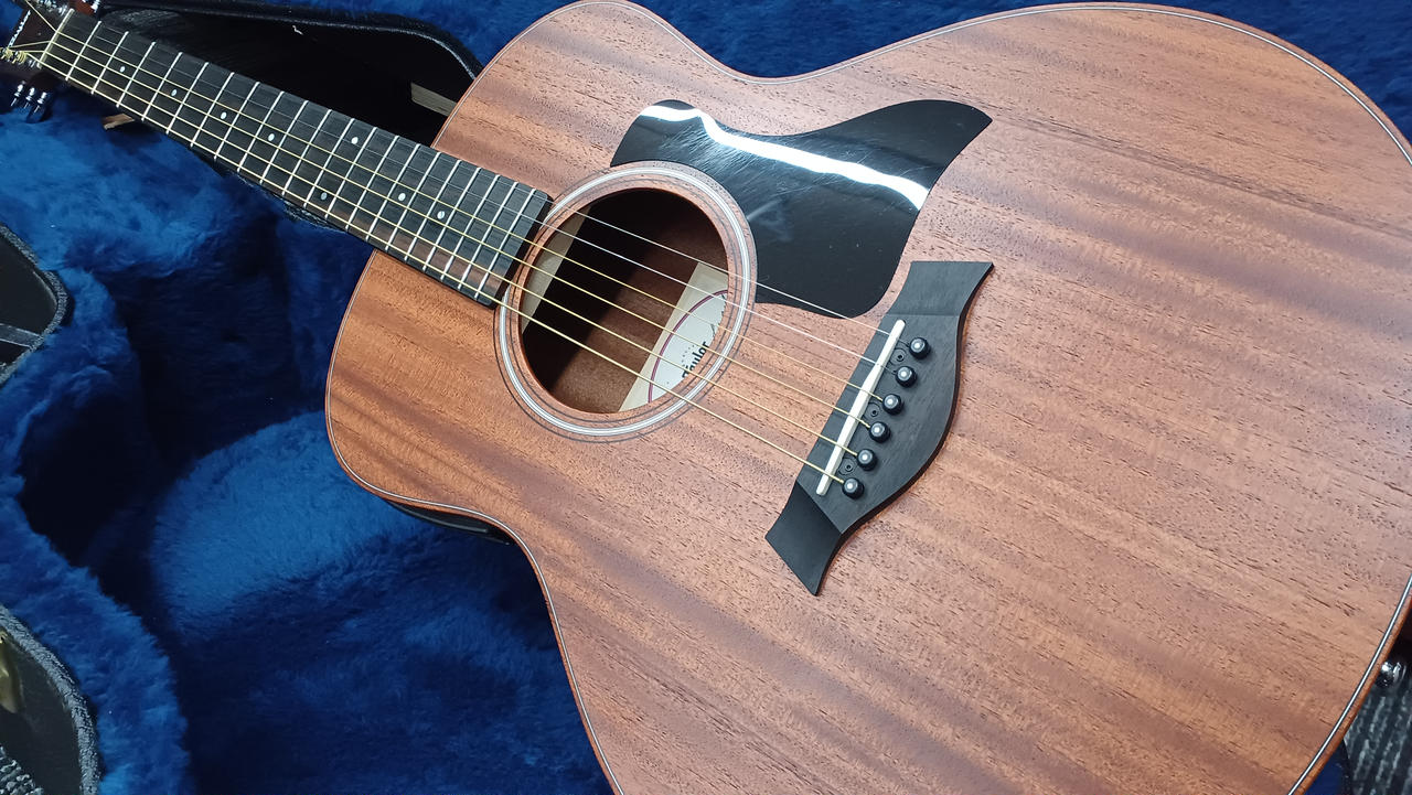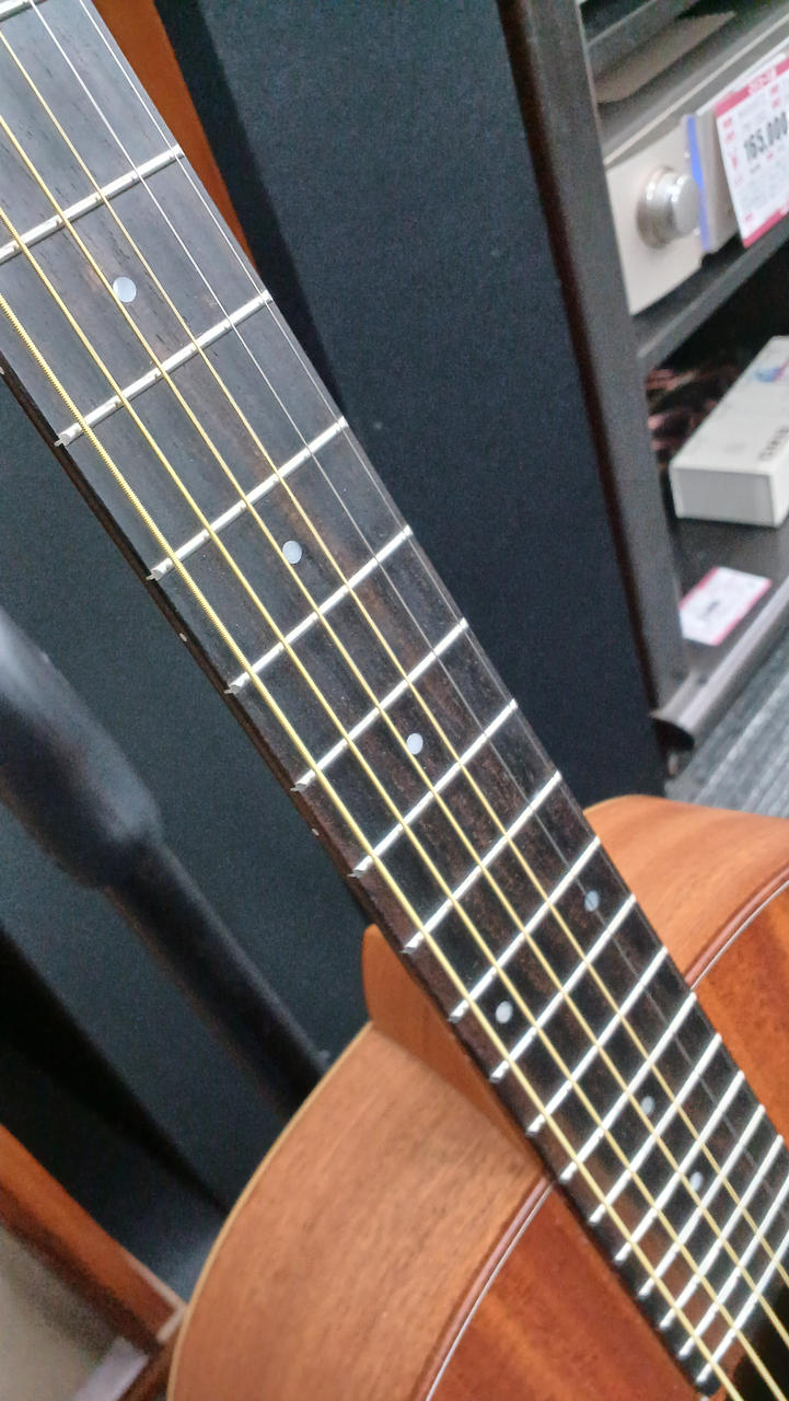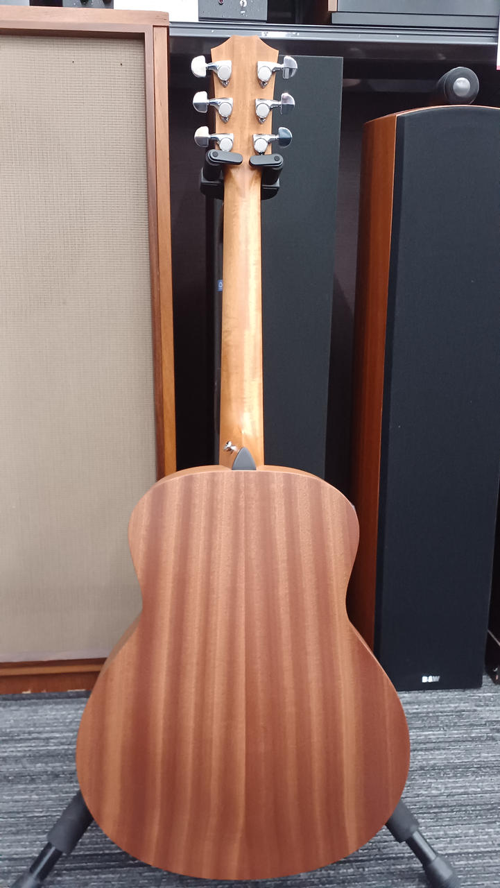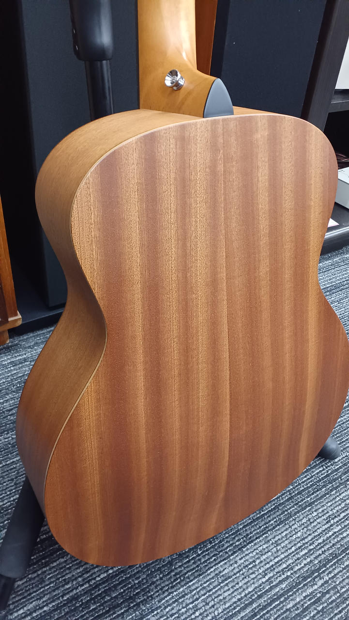 ミニサイズに少し厚い印象のコア単板トップですが結構鳴るのでびっくりします、弦長:約600mm |