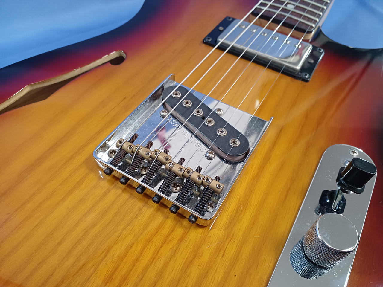 シンライン構造ならではの独特の甘い箱鳴りは非常に艶やかで、非の打ちどころのないギターです!! |