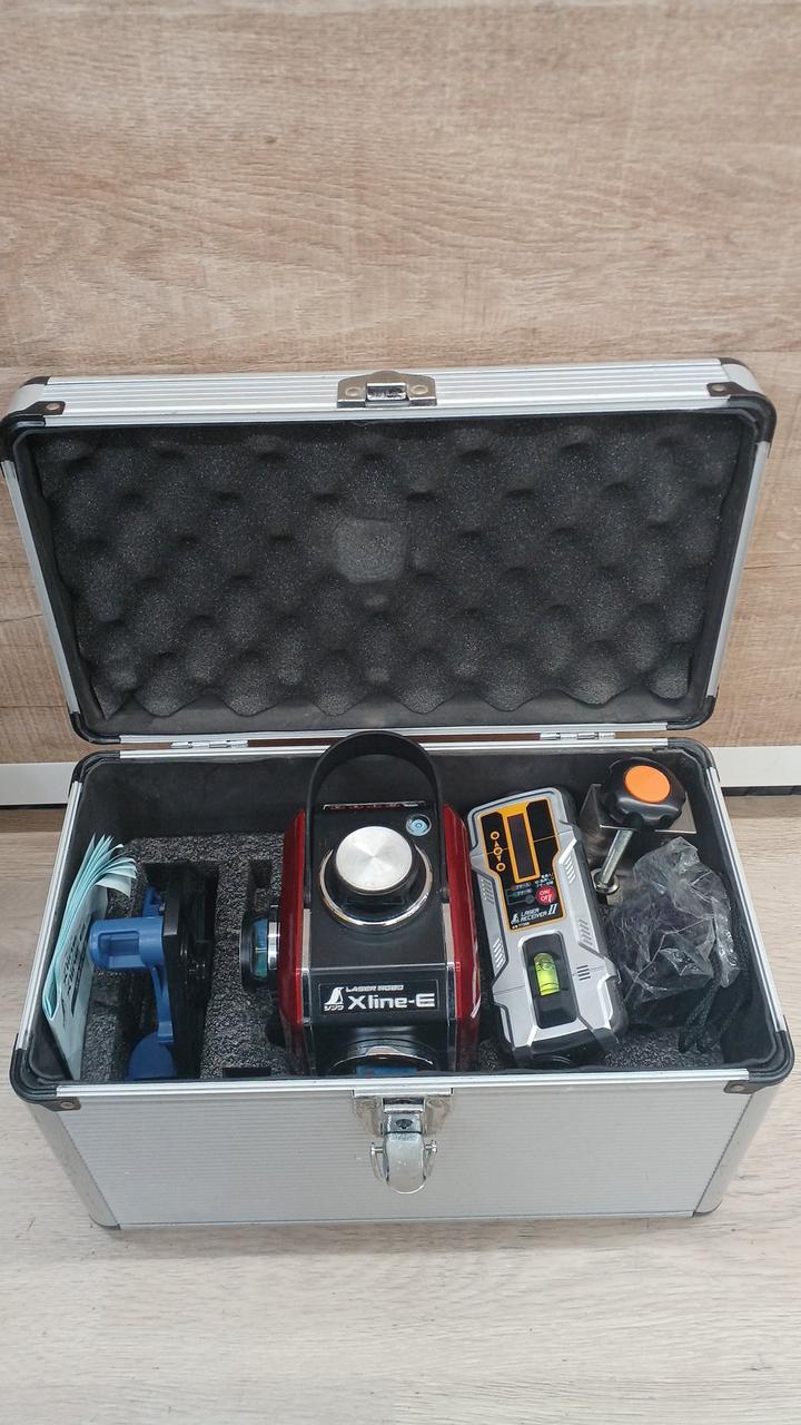 墨出し器と三脚のセットです。1つの光源から360°のレーザーラインを照射します |