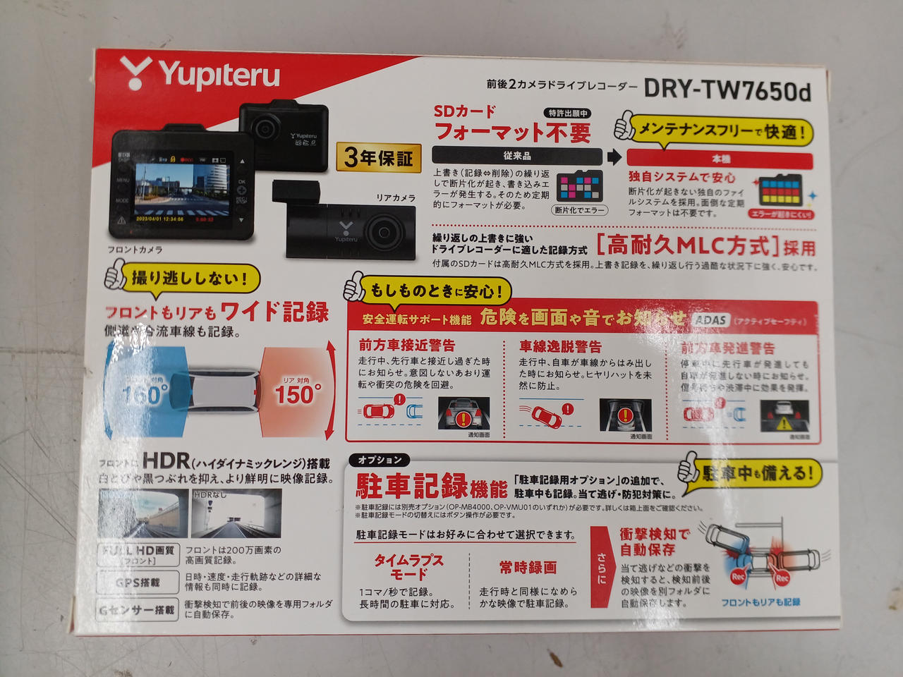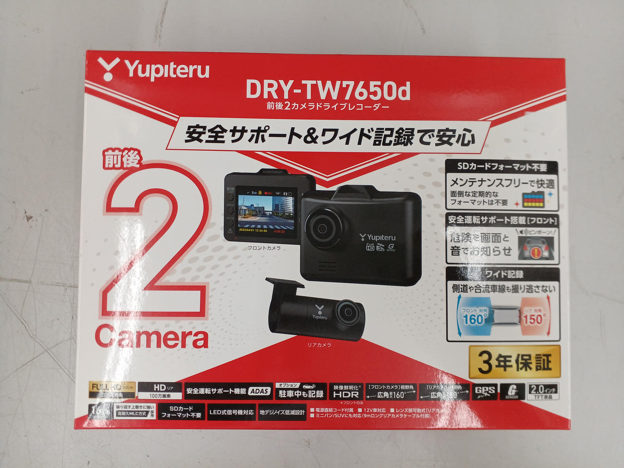 SDカードメンテナンスフリーの前後2カメラドライブレコーダー |