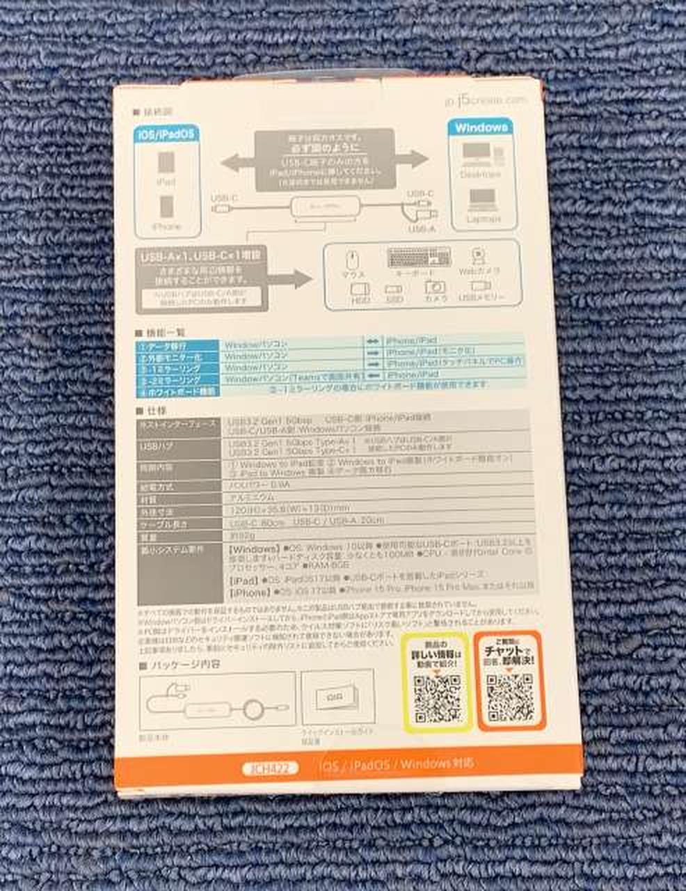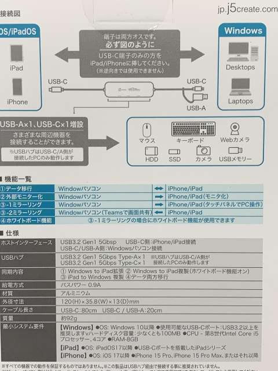 iPad/iPhone(USB-C端子モデル)とWindows PCを接続するUSBハブ |