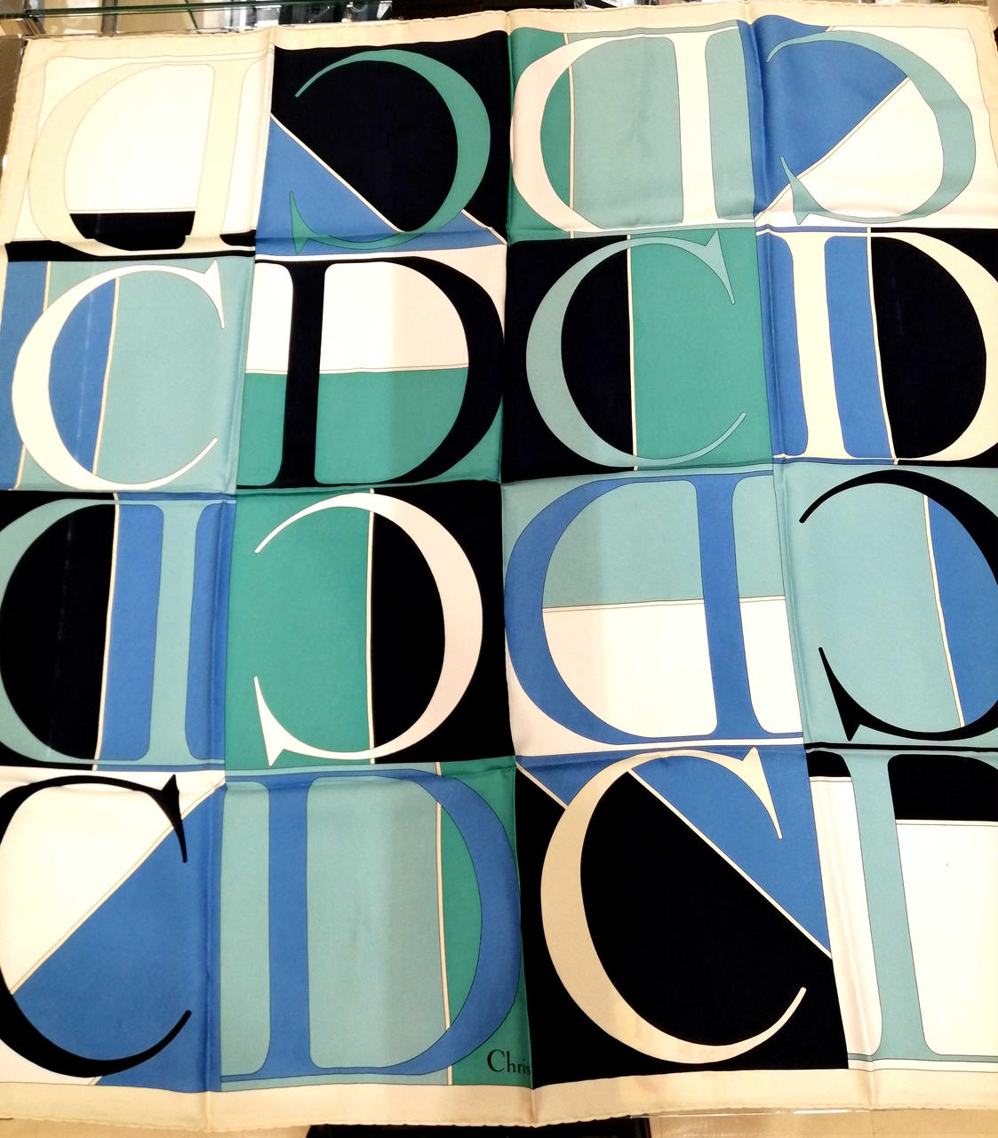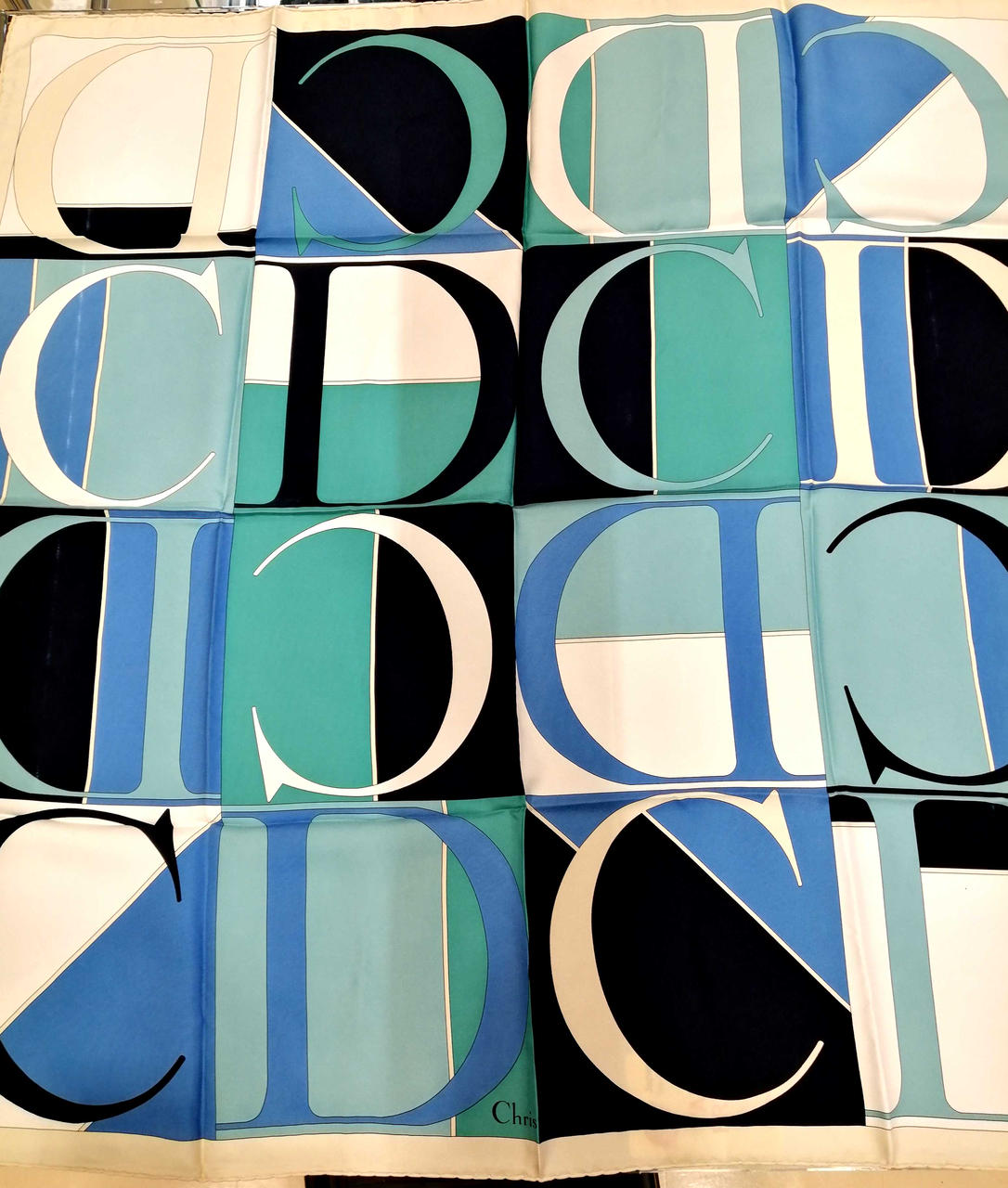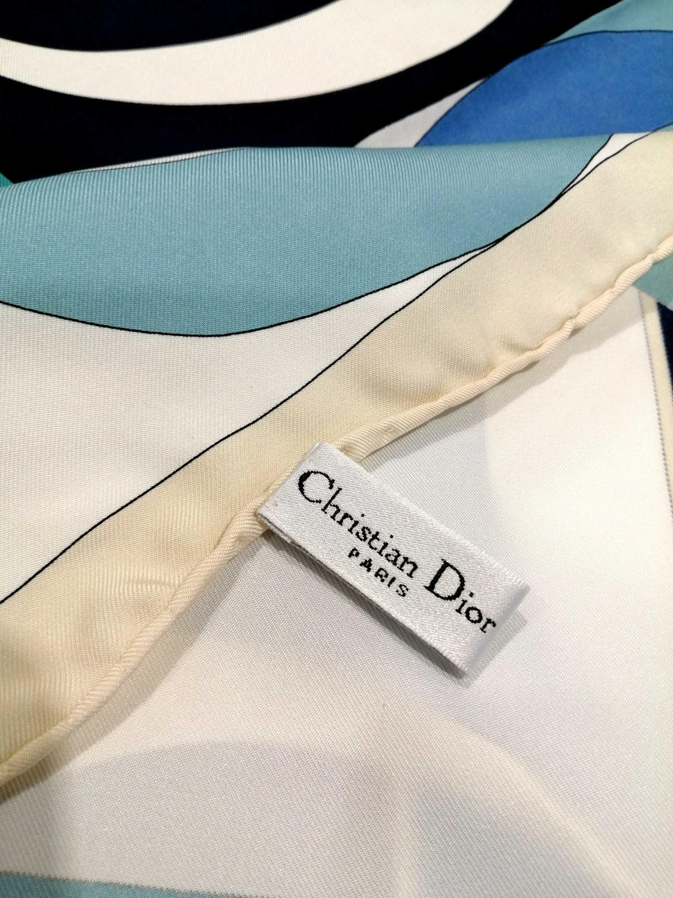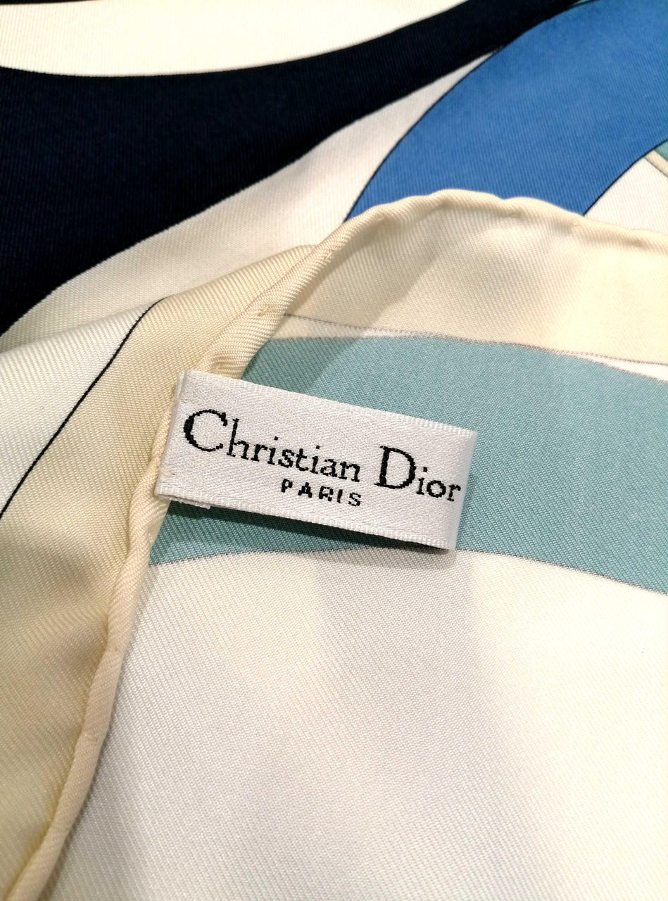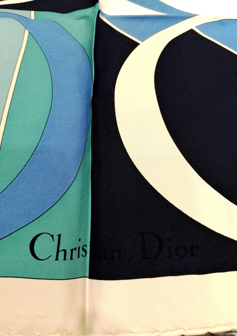 鮮やかなブルー、ブラック、ホワイトの洗練されたデザインのスカーフです!良い状態のお品物です!