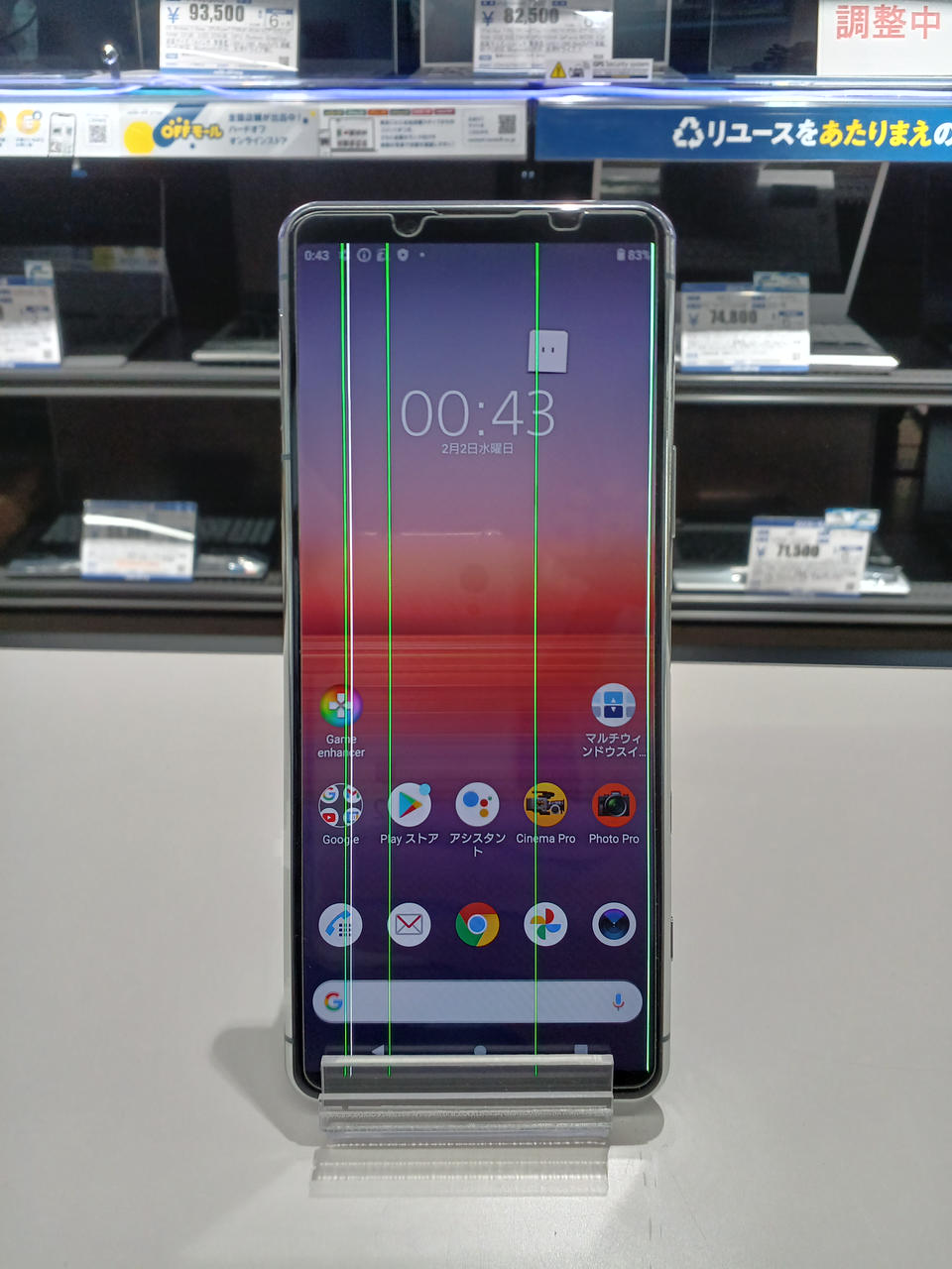 画面に緑の縦線が多数入ります。 |