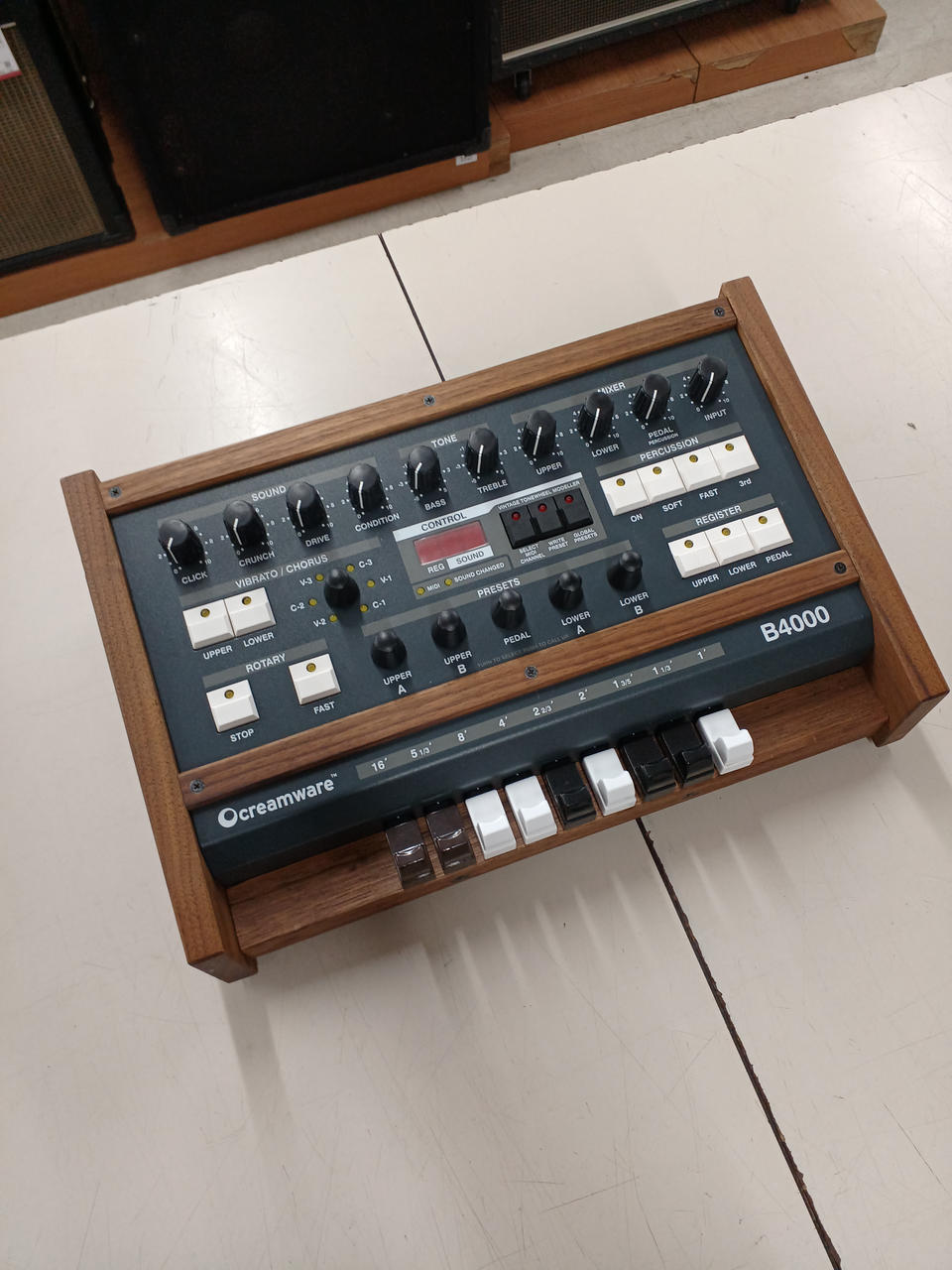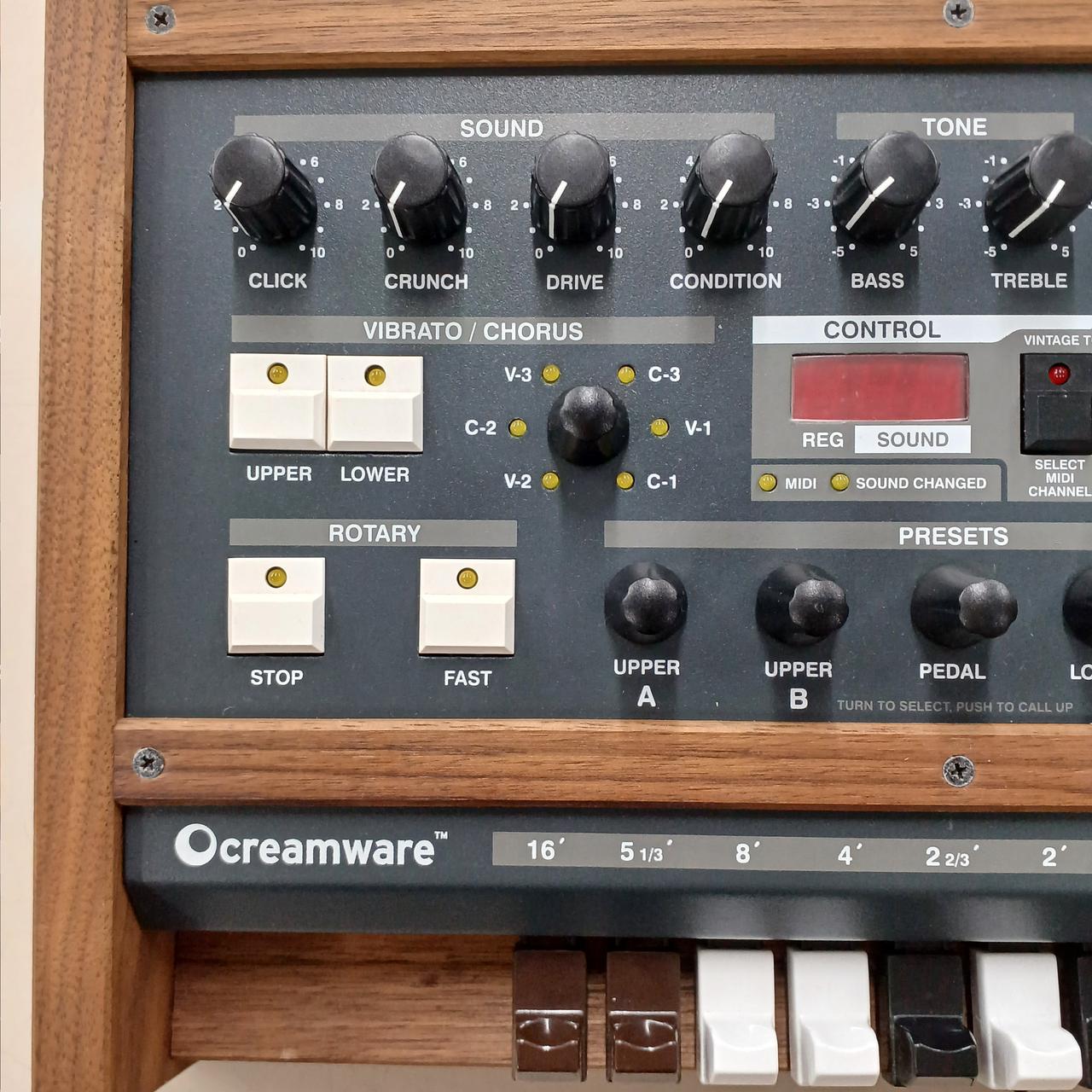 木製サイドの初代モデルです。本物さながらなドローバーのクリック感とリアルにシミュレートされたサウンドが特徴です。 |
