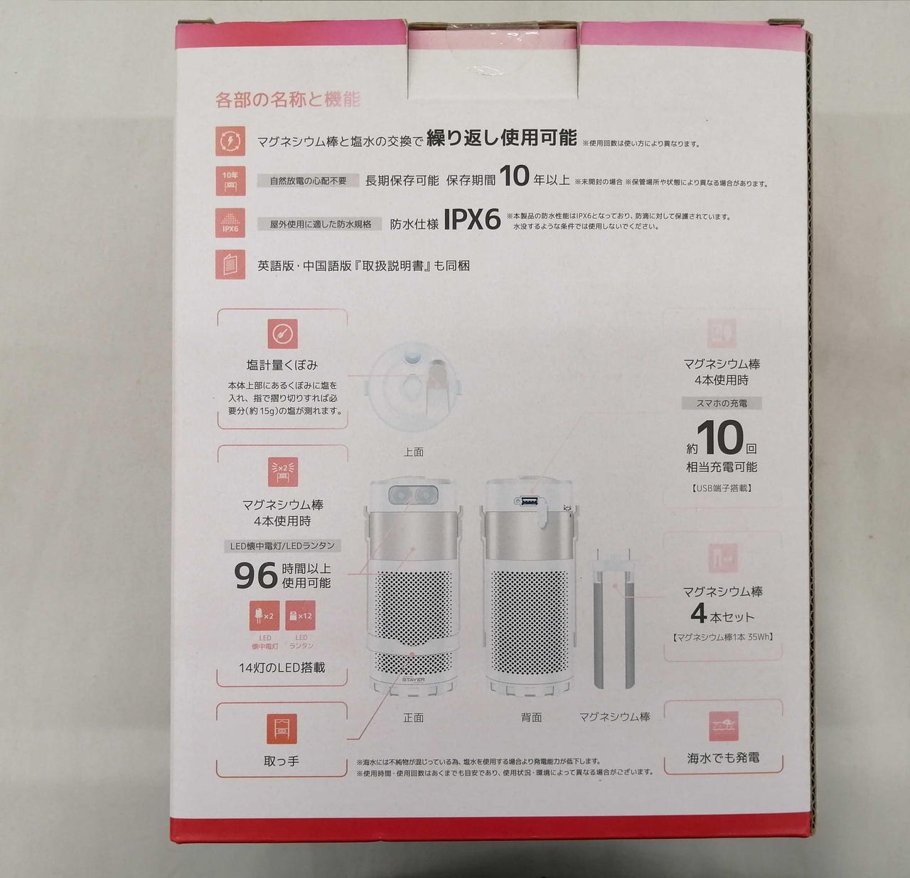水と塩だけでスマホ充電&LEDライトが使えます