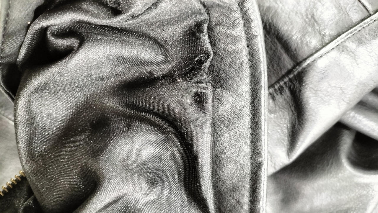 袖口の内布にほつれがあります。 |