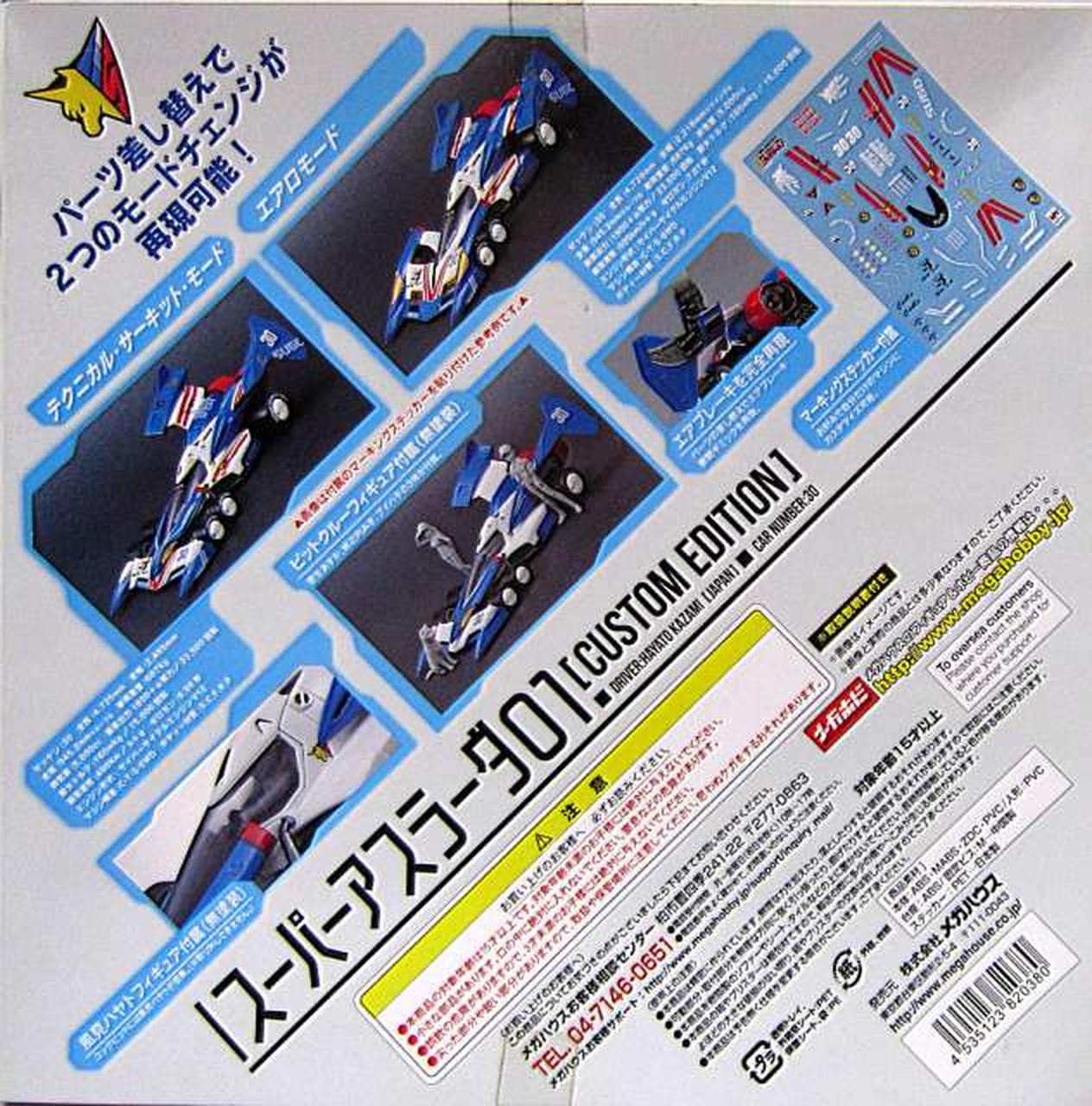 パーツを差し替えてサーキットモードからエアロモードの2タイプのモードを再現可能。ギミックにはブーストポッドとエフェクトファンの展開可動を搭載。 |