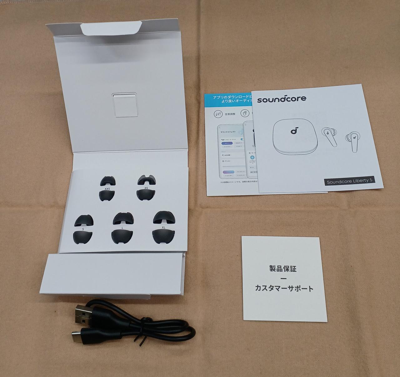 化粧箱/取扱説明書/交換用イヤーチップ/充電用USBケーブル |