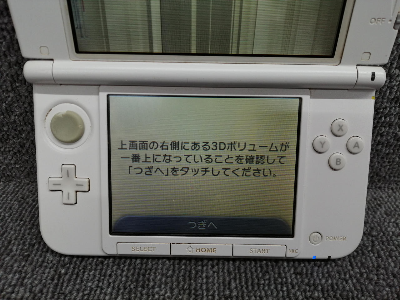 ソフト読み込みましたが上画面乱れて見えません。 |