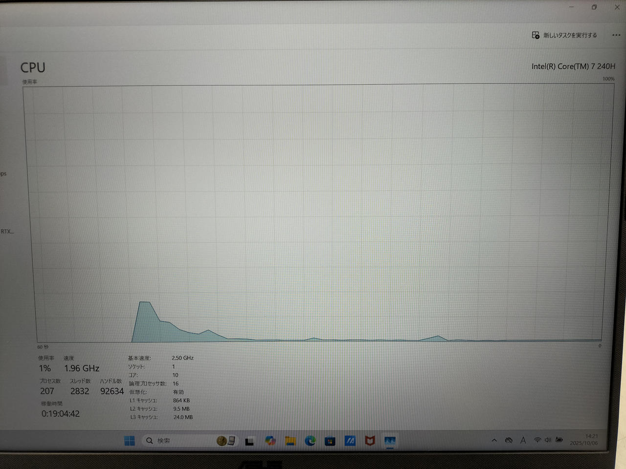 CPU:7 240H@2.50GHZ メモリ:16GB SSD:512GB OS:Windows11Home |
