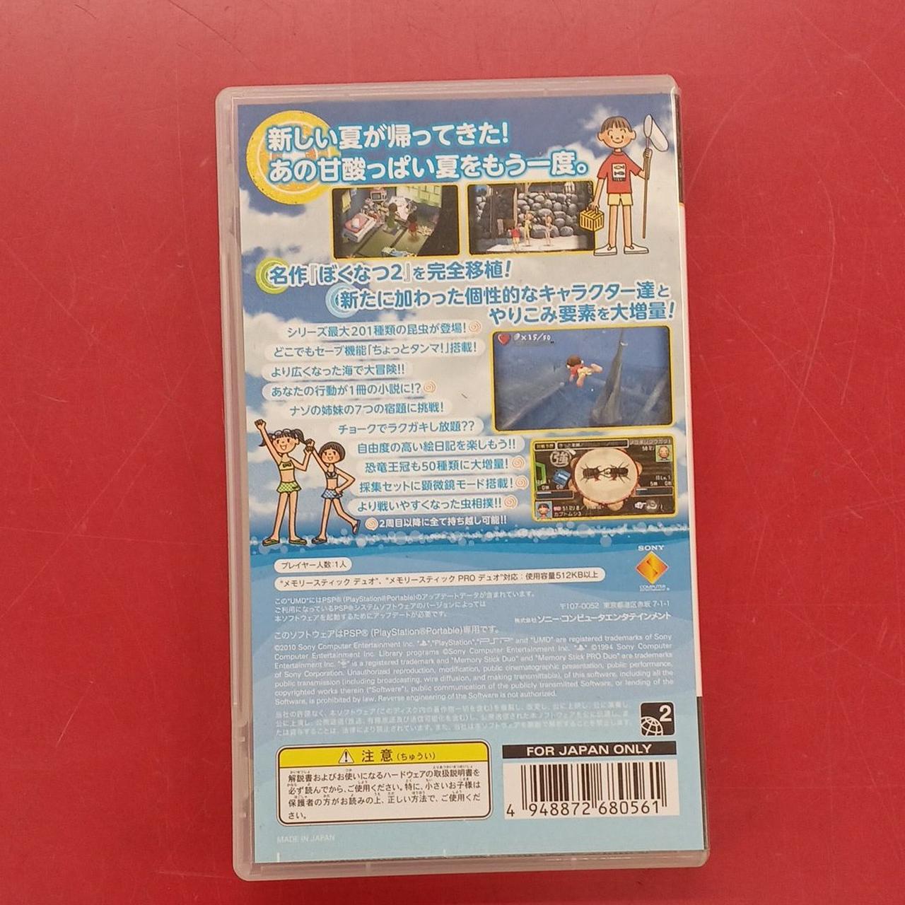 PS2のヒット作『ぼくのなつやすみ2 海の冒険篇』がPSPで完全リニューアル!新キャラ・新シナリオの追加はもちろん、ナゾナゾ姉妹の宿題にチャレンジしたり、小説家にネタを提供したり、夏休みの要素が大進化!絵日記をじゃんじゃん書いて夏休みを記録せよ!昆虫採集や恐竜王冠なども大増量!シリーズ初のどこでもセーブ機能も搭載!巨大沈没船の巨大な謎を解こう!