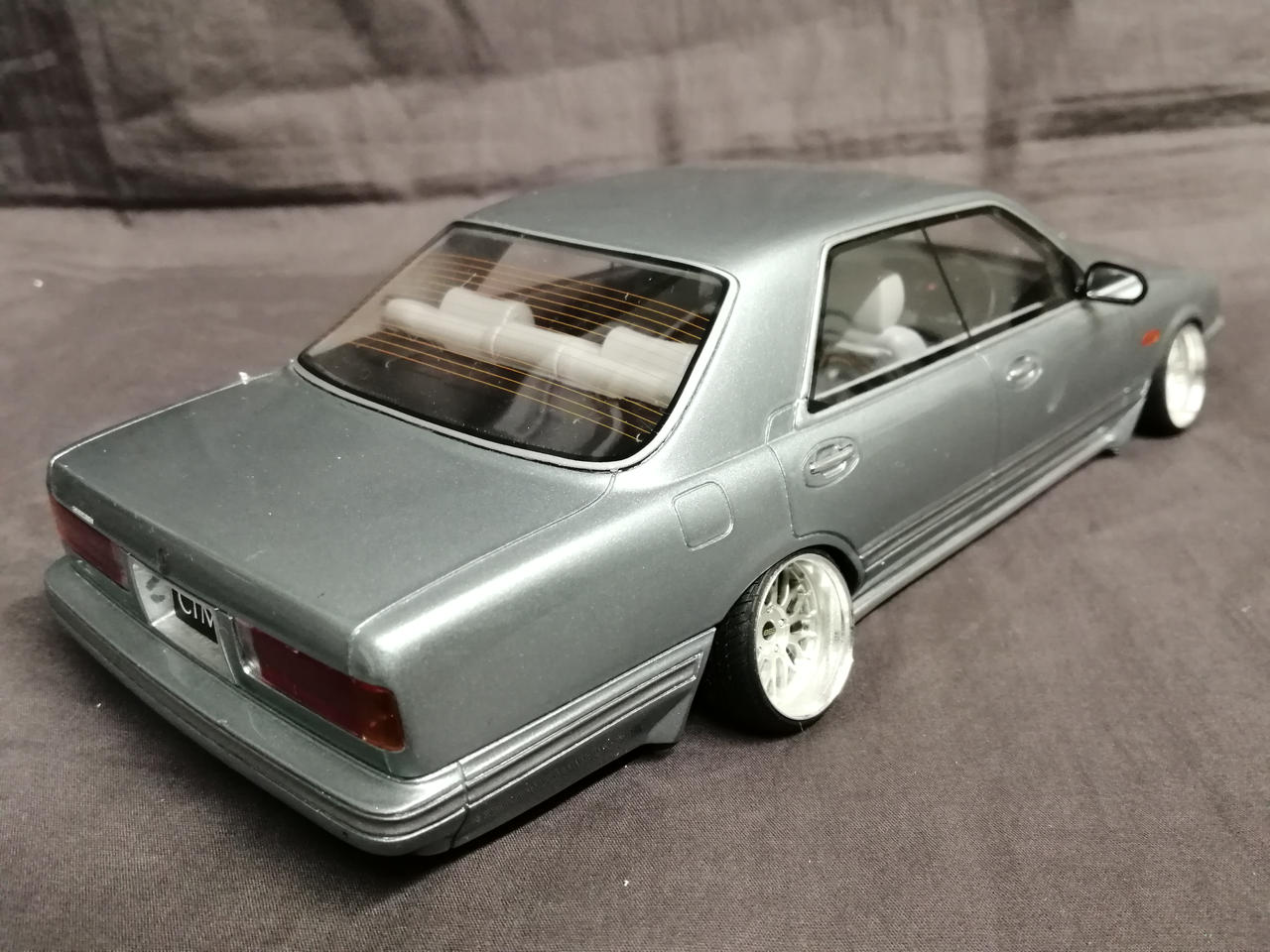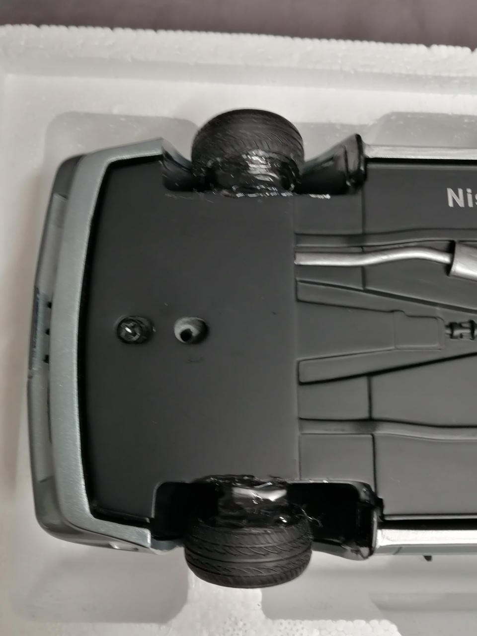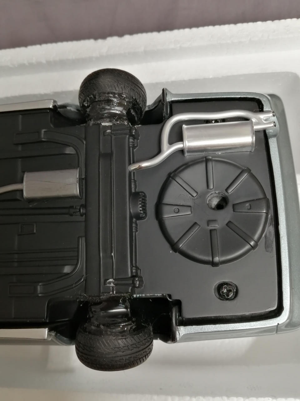 車輪を一度切って鬼キャン仕様に加工してあります。塗装の一部に溶けたような跡があります。車体色はブルーですがホワイトの箱に入っています。箱に傷み多数あり。 |