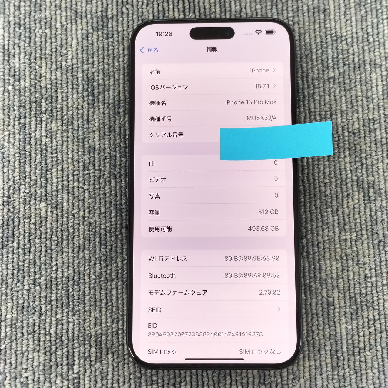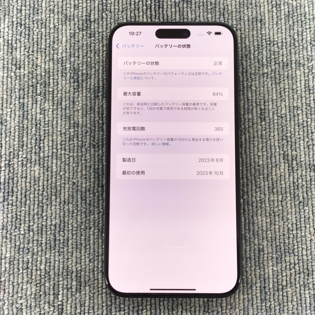 512GBモデル iOS18.7.1 バッテリー最大:84% |