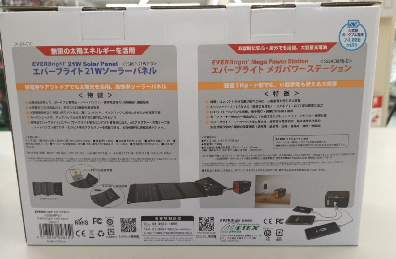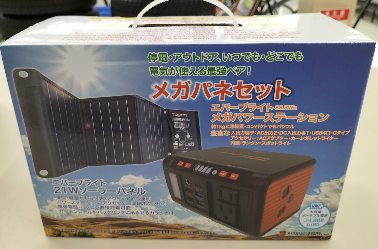 ポータブル電源とソーラーパネルのセット。 |