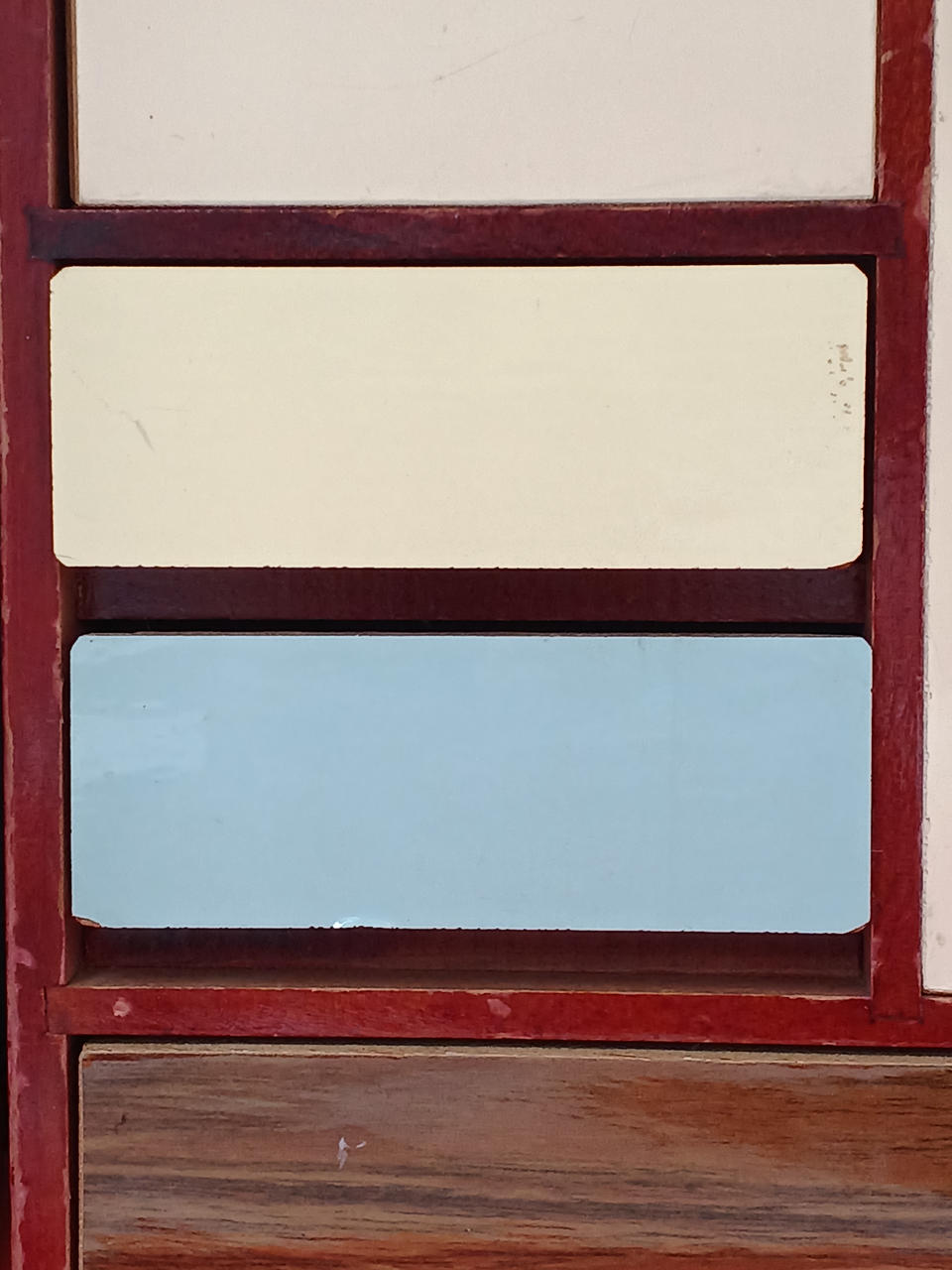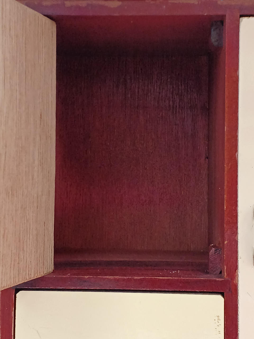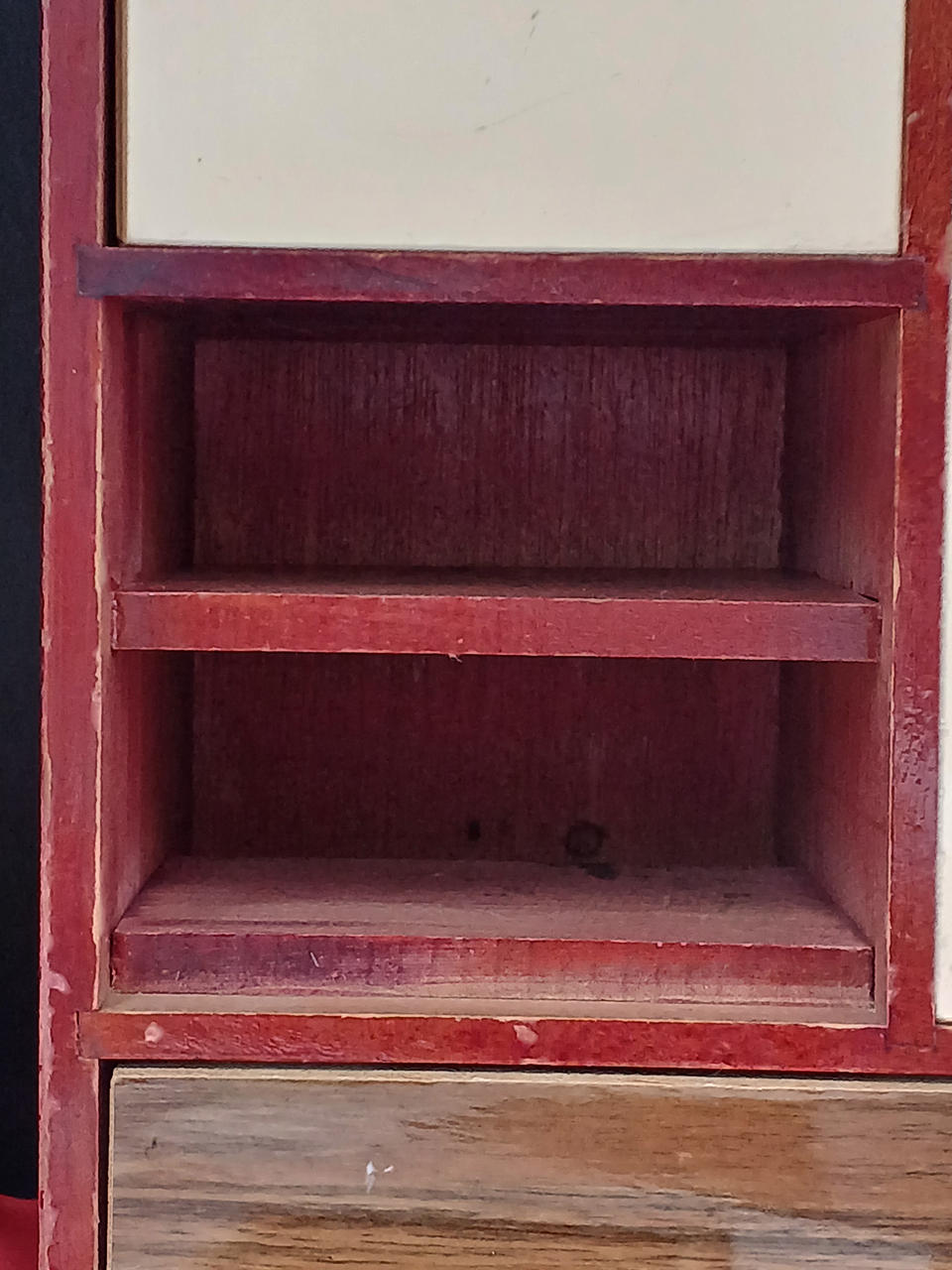 現状販売。イタミ、劣化、汚れなど。味わい深い趣となっております。縦33.5、横24.5、奥行き12.5(cm)。 |