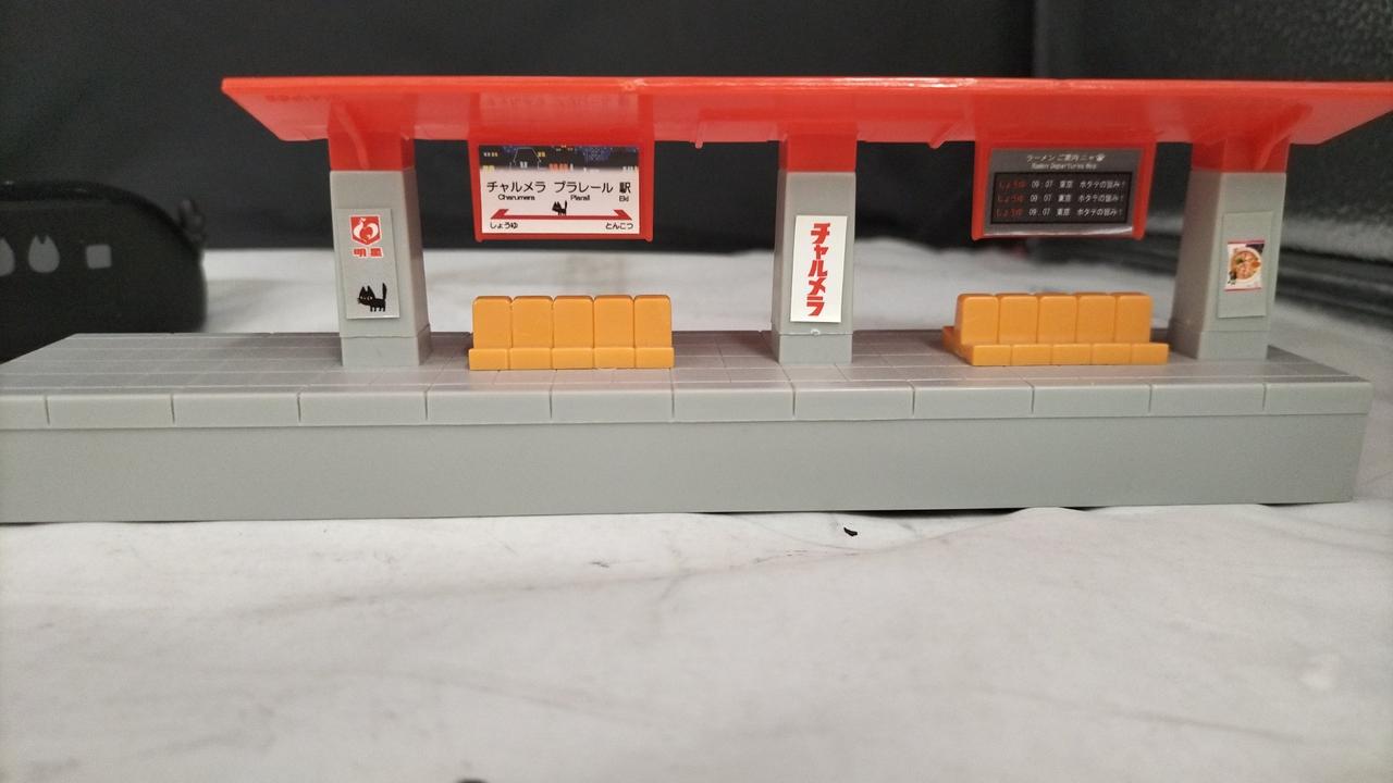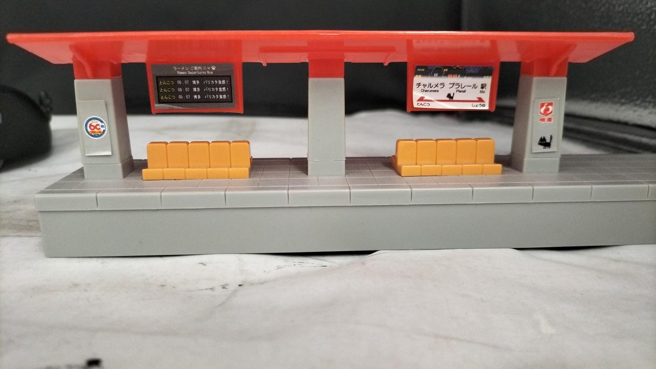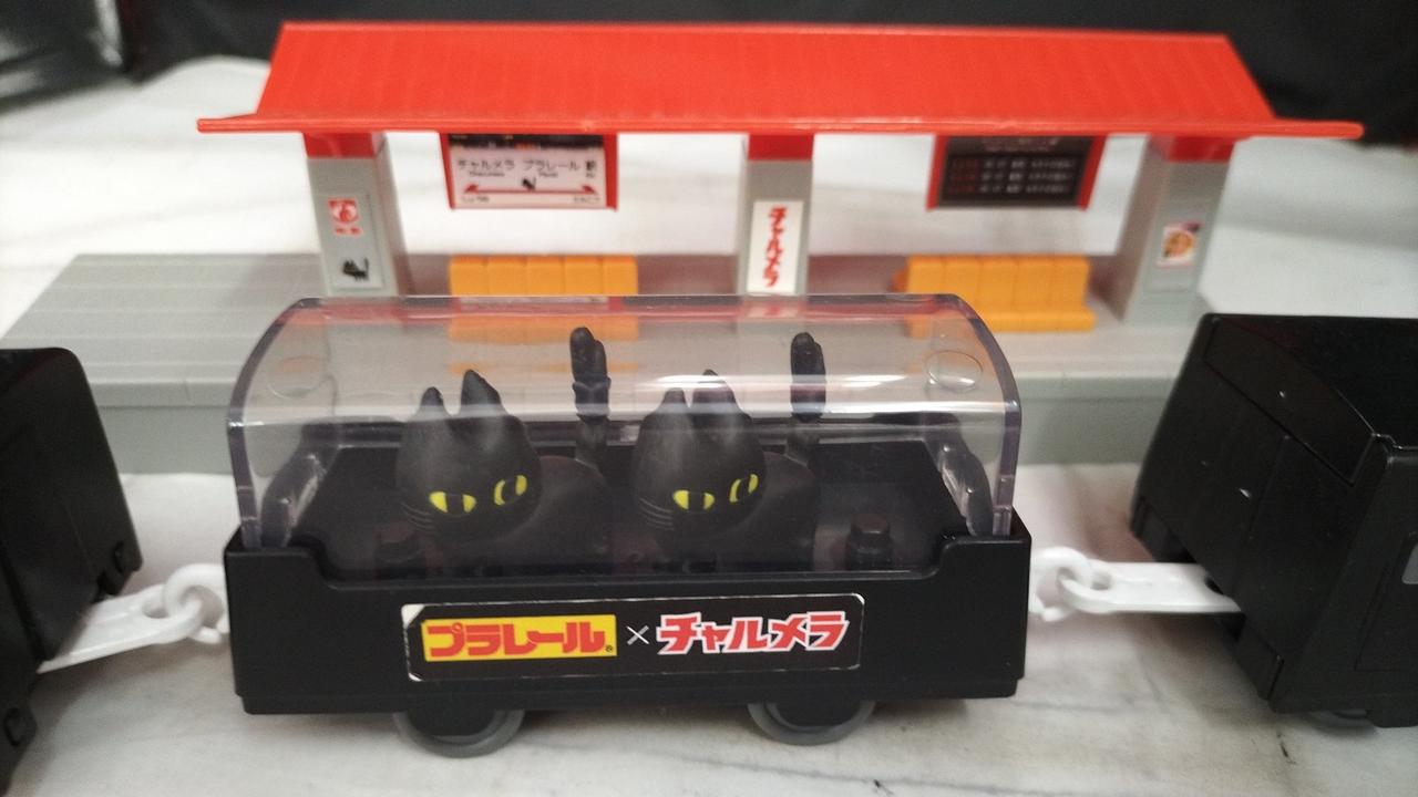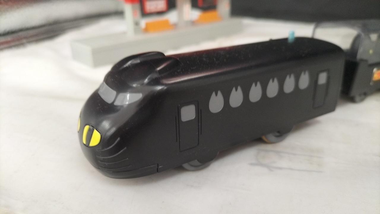 車両、くろネコ(約30×30mm)×2、高架駅のセットでの販売 |