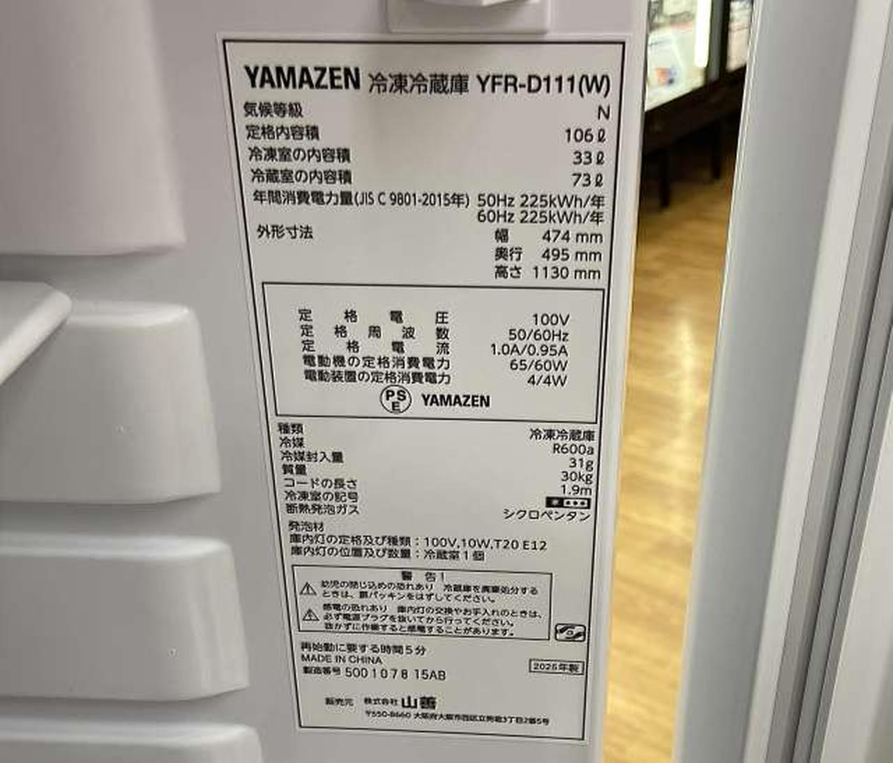 定格内容積:106 L 冷凍室:33L 冷蔵室:73L 耐熱トップテーブル:〇 |