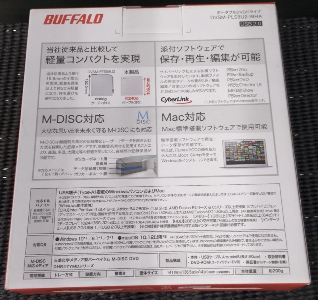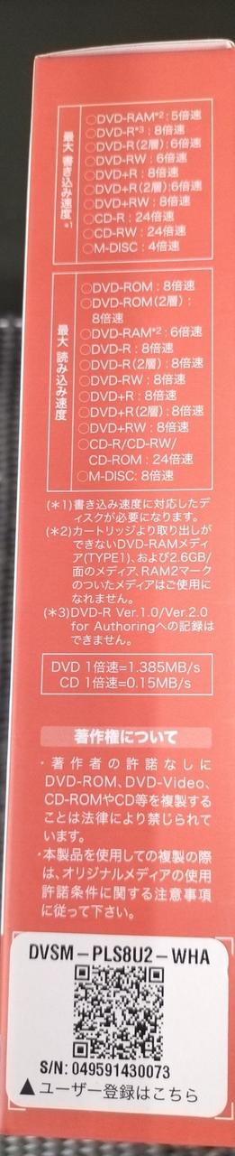 USB2.0 設置方式:外付け バスパワー対応:○ 対応メディア:DVD-R/DVD-RW/DVD-R DL/DVD+R/DVD+RW/DVD+R DL/DVD-RAM |