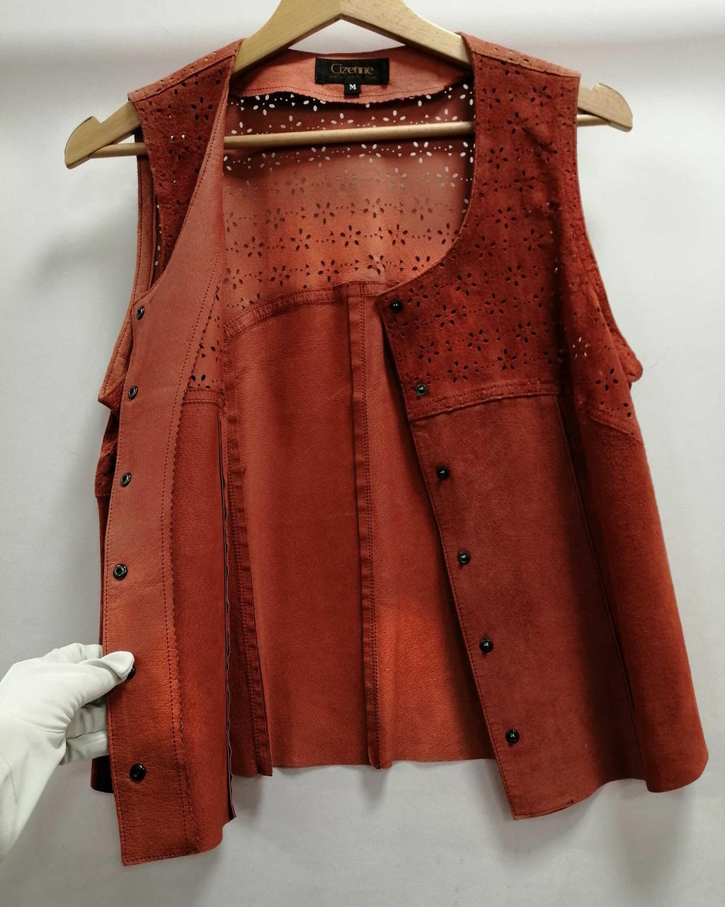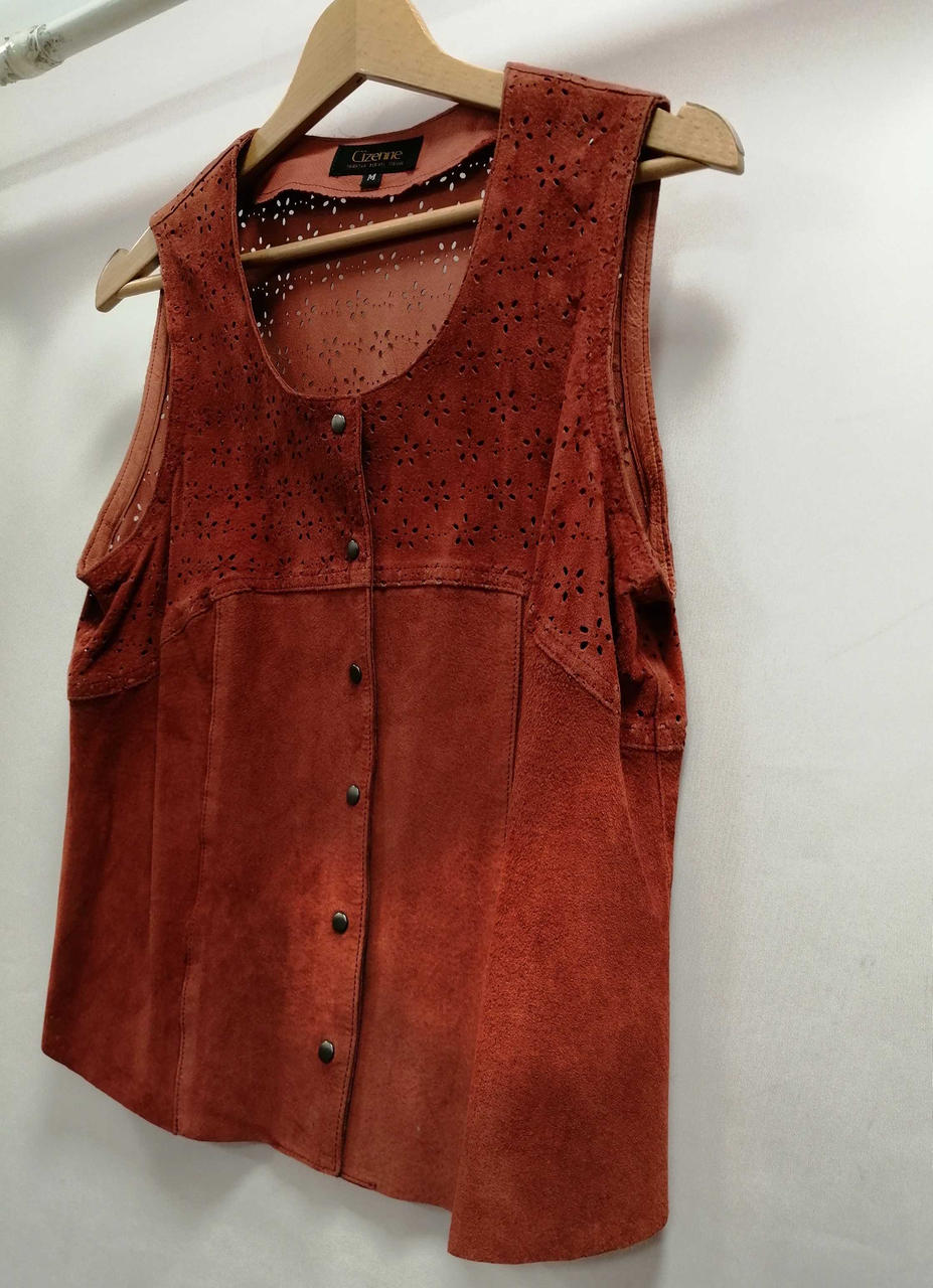 シゼンヌのレザーベストです。カッティングがとても素敵です。 |