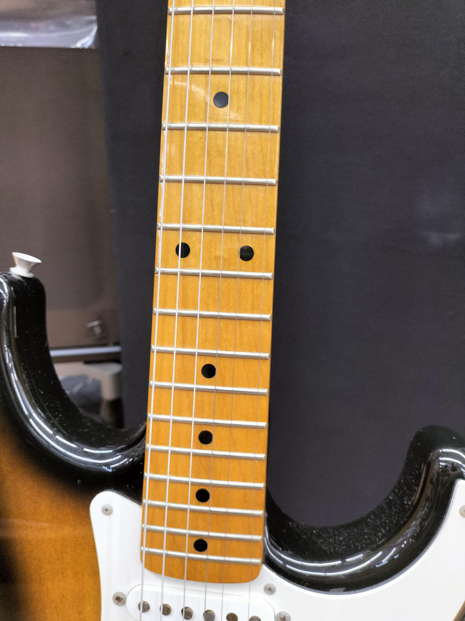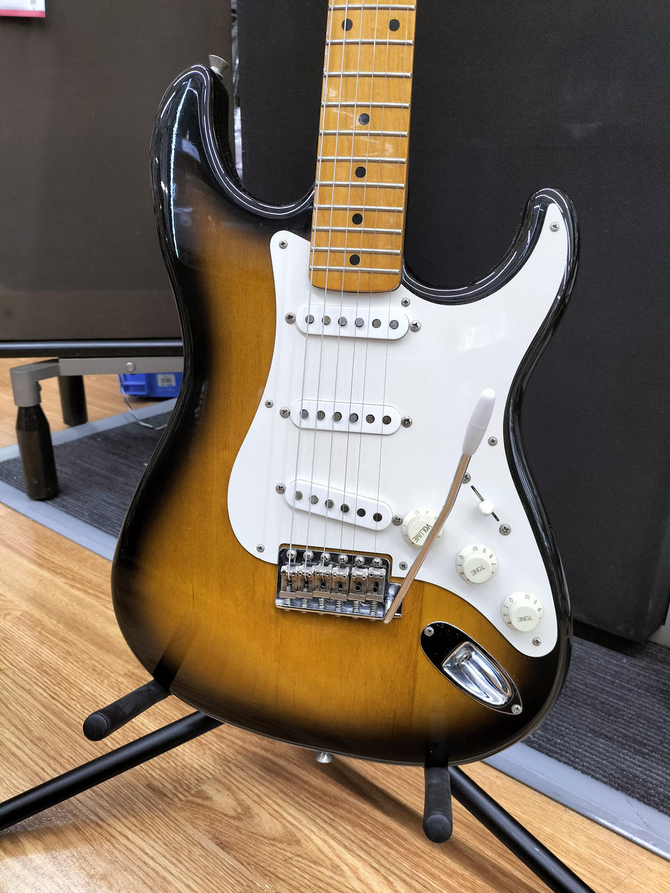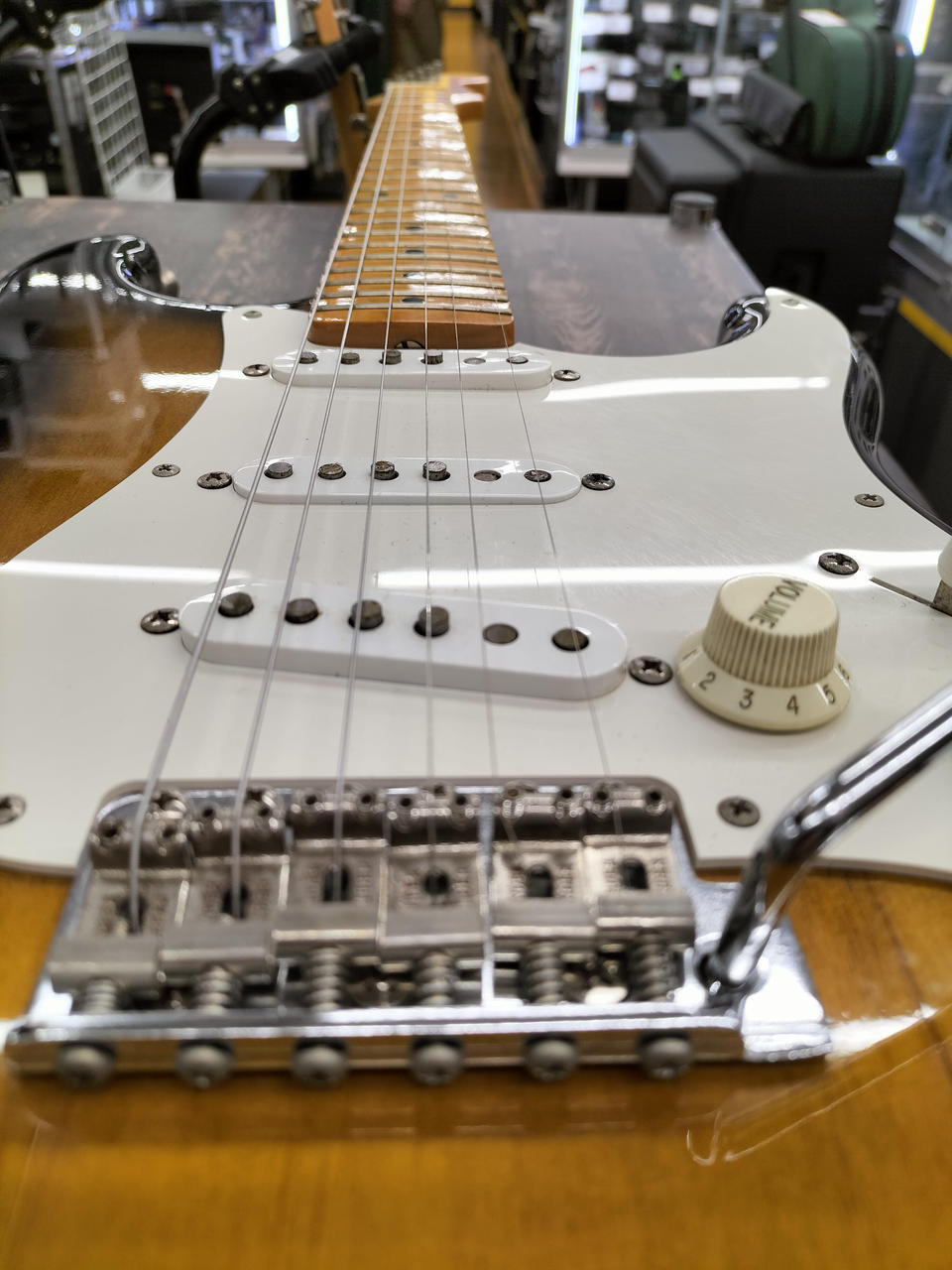 アルダーボディにメイプル指板、1プライピックガード ST-Vintage(USA)ピックアップを搭載したモデル |
