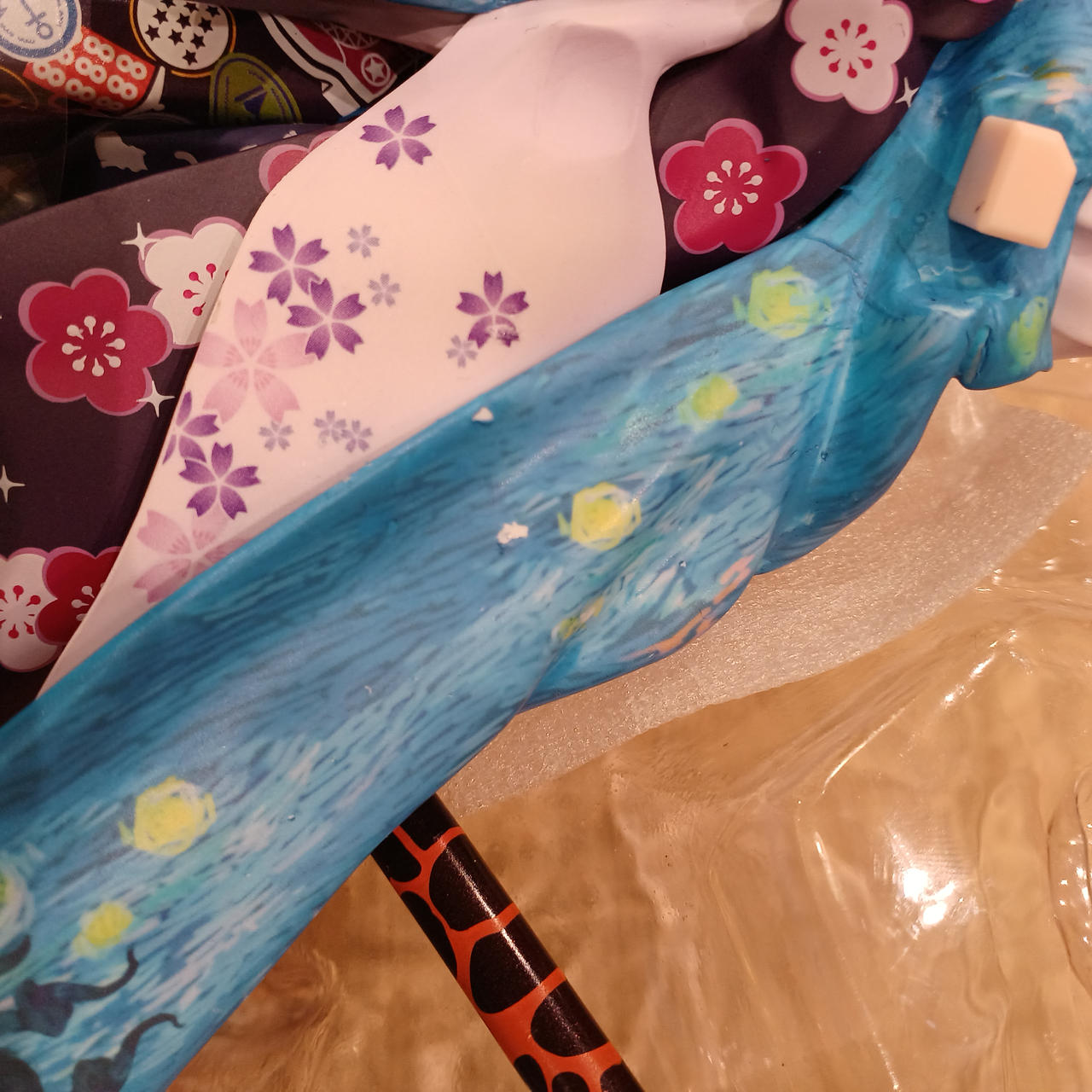 筆パーツ剥がれ、接着跡あり |