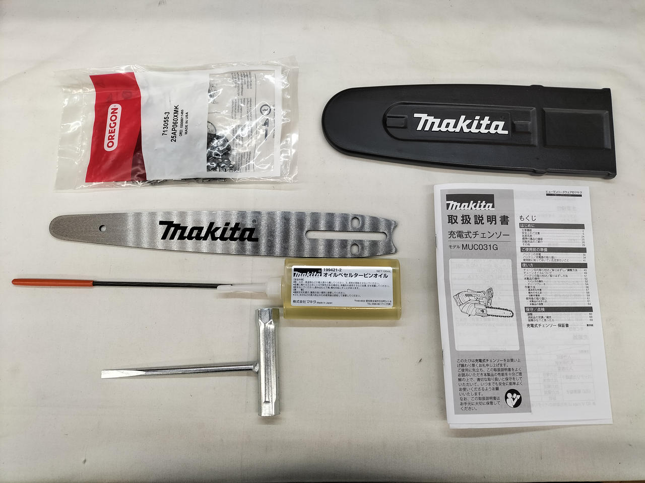 取説・チェーンオイル・刃交換用工具 付属